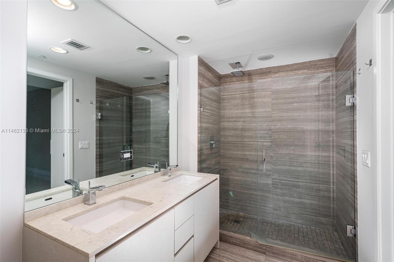 Desired corner unit with views of the Miami skyline and Biscayne Bay. This spacious 3/3 + den which can be converted into a 4th bedroom, has floor to ceiling windows throughout. A private elevator takes you directly to your unit. This luxury building has 2 floors of amenities including a rooftop pool, outdoor theater, squash court, indoor basketball court, a spa featuring a co-ed hammam, a fitness center with a double-height ceiling, an outdoor track, an arcade with a golf simulator, and a host of other fantastic features! Located in central Brickell you can walk to everything. 2 garage spaces included.