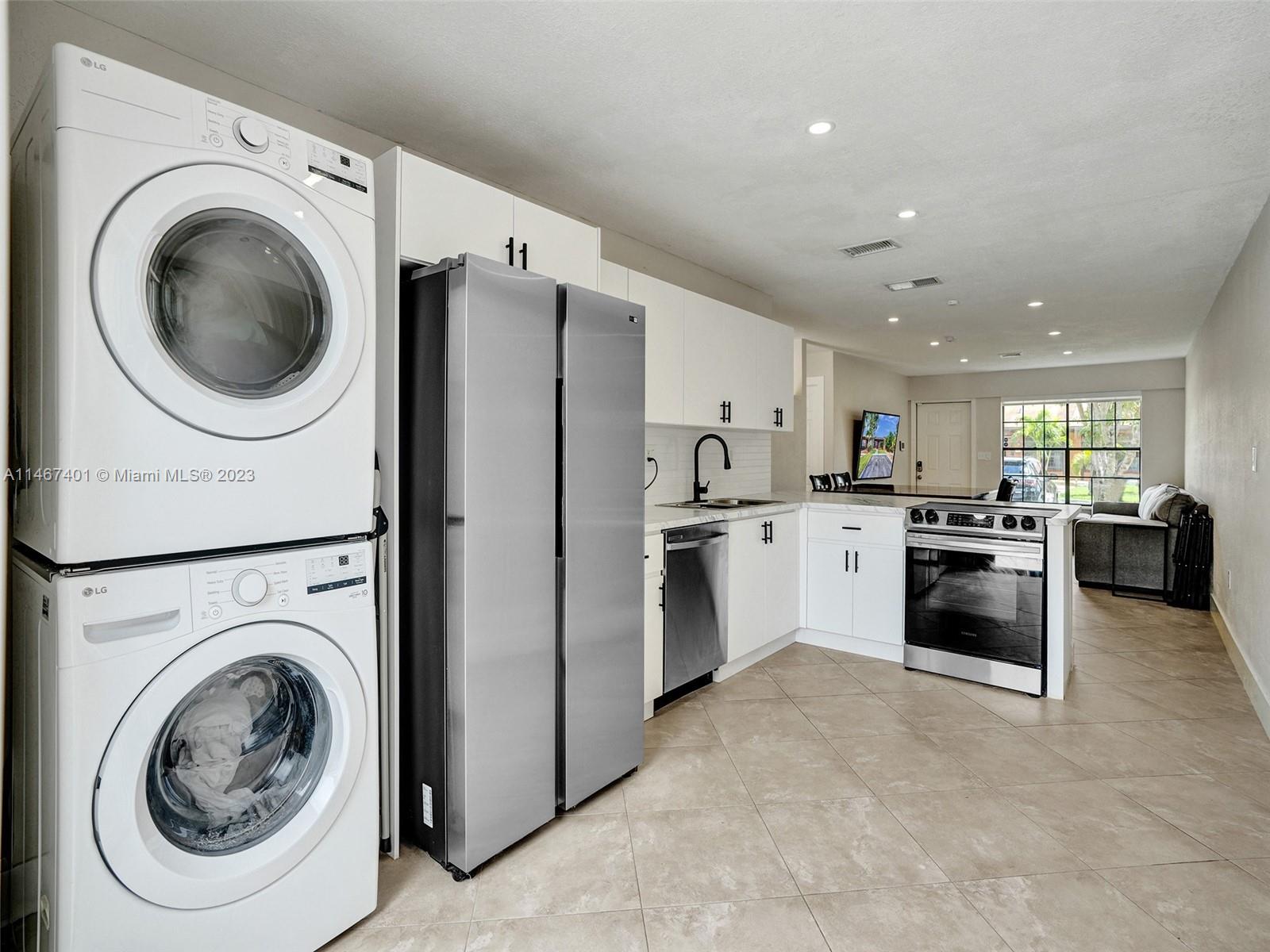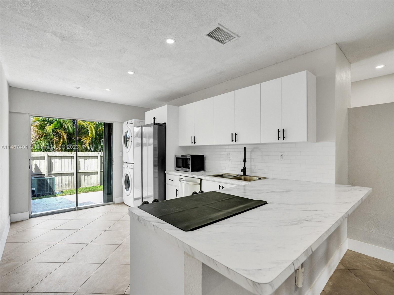 Rarely available villa in the charming Cedarwoods community! This unit features 2 bed/2 bath, huge patio, large bedrooms, and plenty of natural light. Loaded with upgrades such as renovated kitchen and bathrooms, stainless steel appliances, new washer/dryer (2022), modern blinds (2022), new pavers in the patio (2022), new front gutters (2023), newly insulated attic (2022), termite preventative treatment, and much more. Accordion shutters throughout. 2 assigned parking spots in front of the unit, low HOA fee, and guest parking. Centrally located with easy access to I-75, I-595, and the Turnpike. Few miles away from Memorial Hospital West, C.B. Smith Park, shopping, dining, and much more! **Can be purchased with FHA, VA, or low down payment conventional financing.**