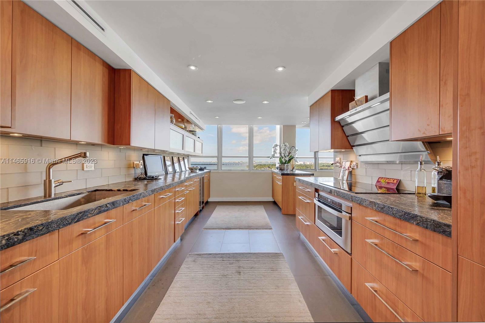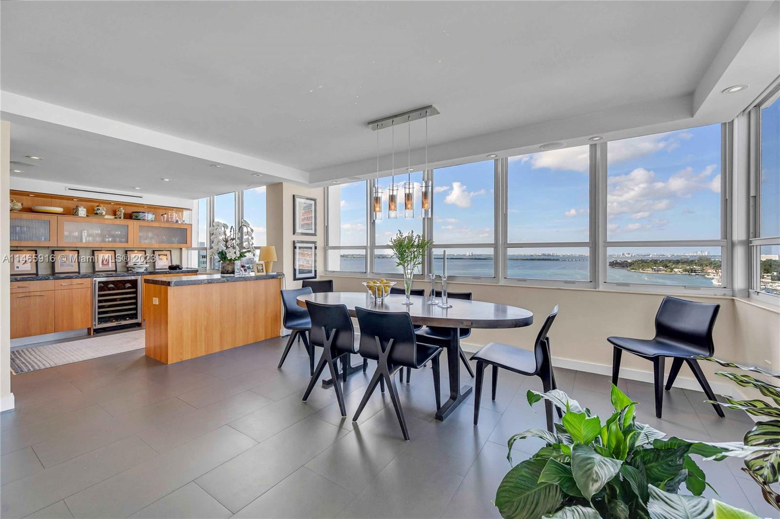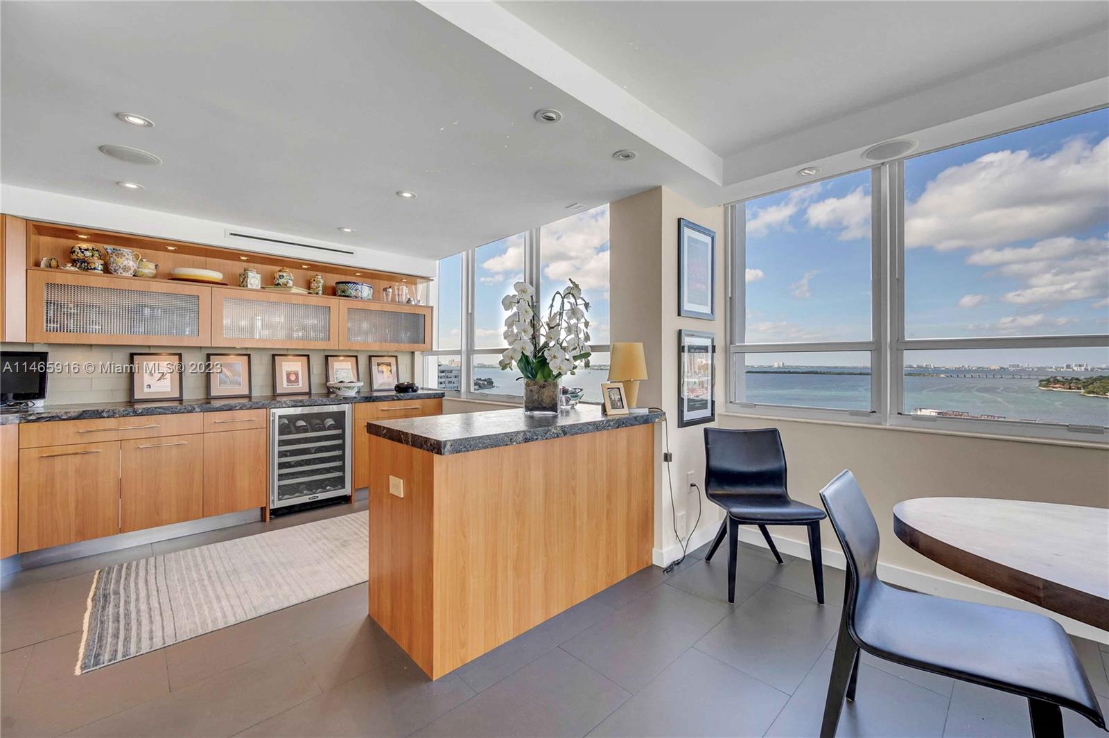 What a...View! Price! Location! NE corner with expansive views of Bay, Marina, Belle Isle Park, & SoBe skyline. Thoughtfully renovated with quality materials & finishes. Custom kitchen equipped with Sub Zero refrigerator, Wolf double ovens/induction cooktop, microwave drawer, & wine cooler. Large matt grey porcelain tiles throughout, impact windows/doors with powered shades, PLUS hardwired internet & speakers for uninterrupted work & play. Both bedrooms have ensuite bathrooms with ample storage. Main has separate soaking tub & oversized shower. Large open balcony adjacent to living room perfect for sunrises, afternoon cocktails, or just enjoy the breeze & views. Updated building with reserves. Completed updates include hallways, internet, fire sprinklers, EV charging, & gym. Lobby underway