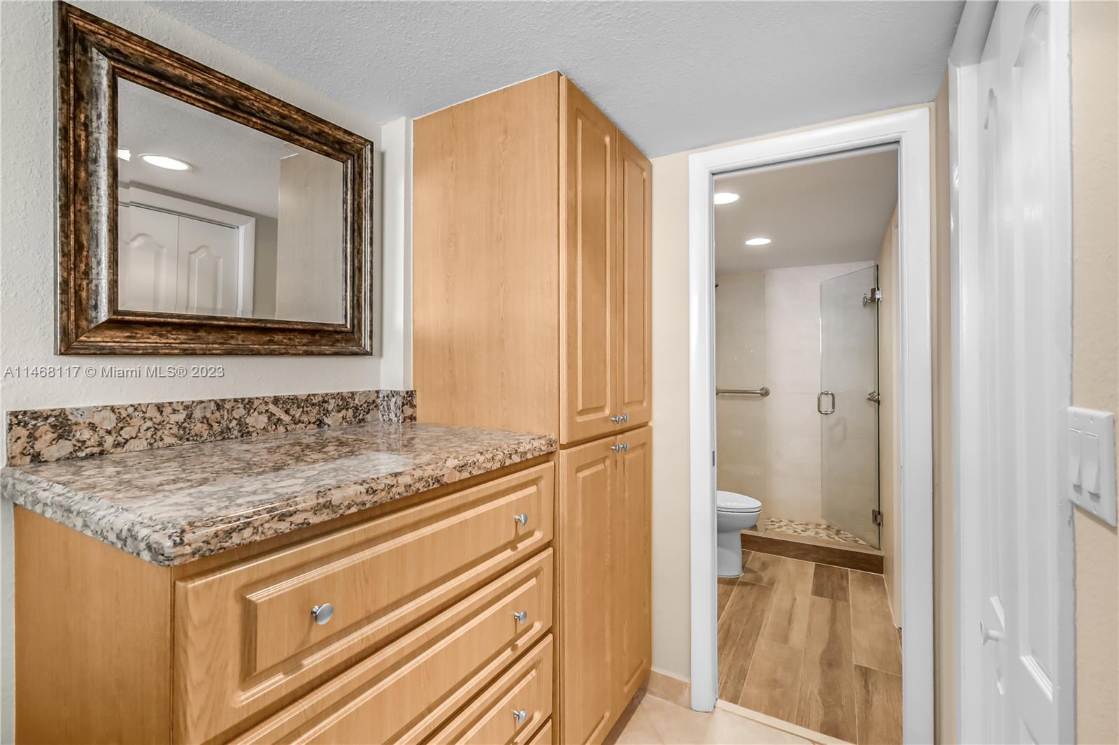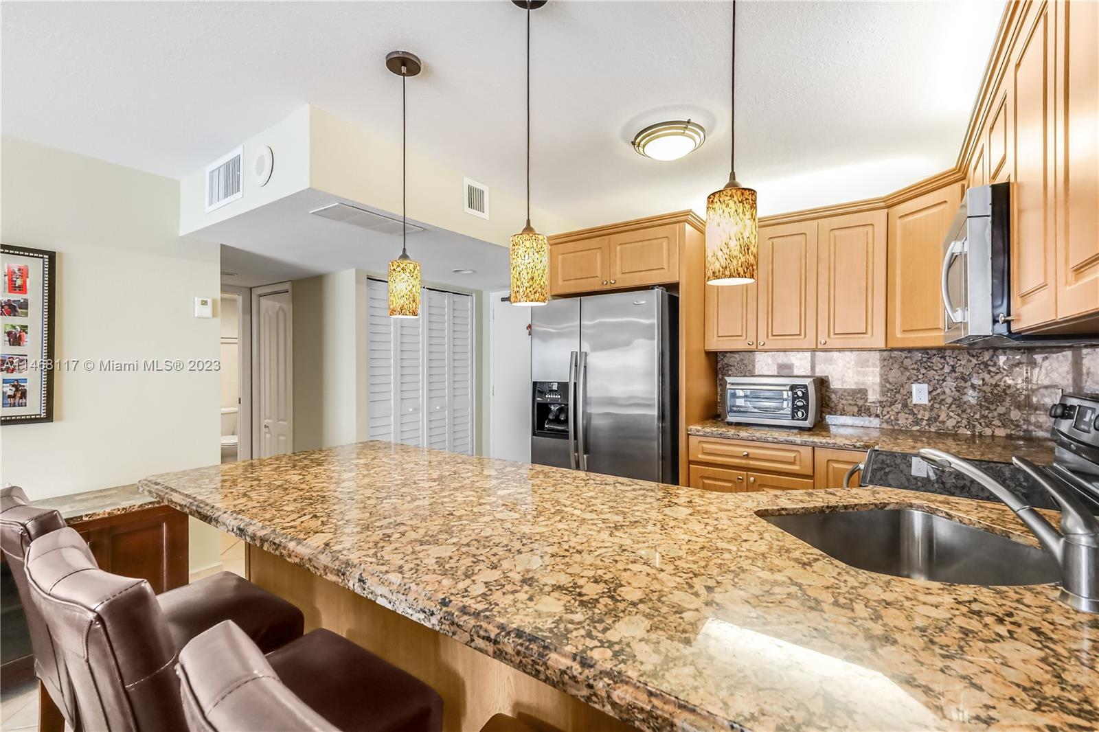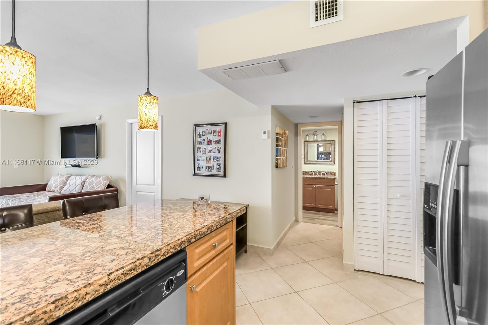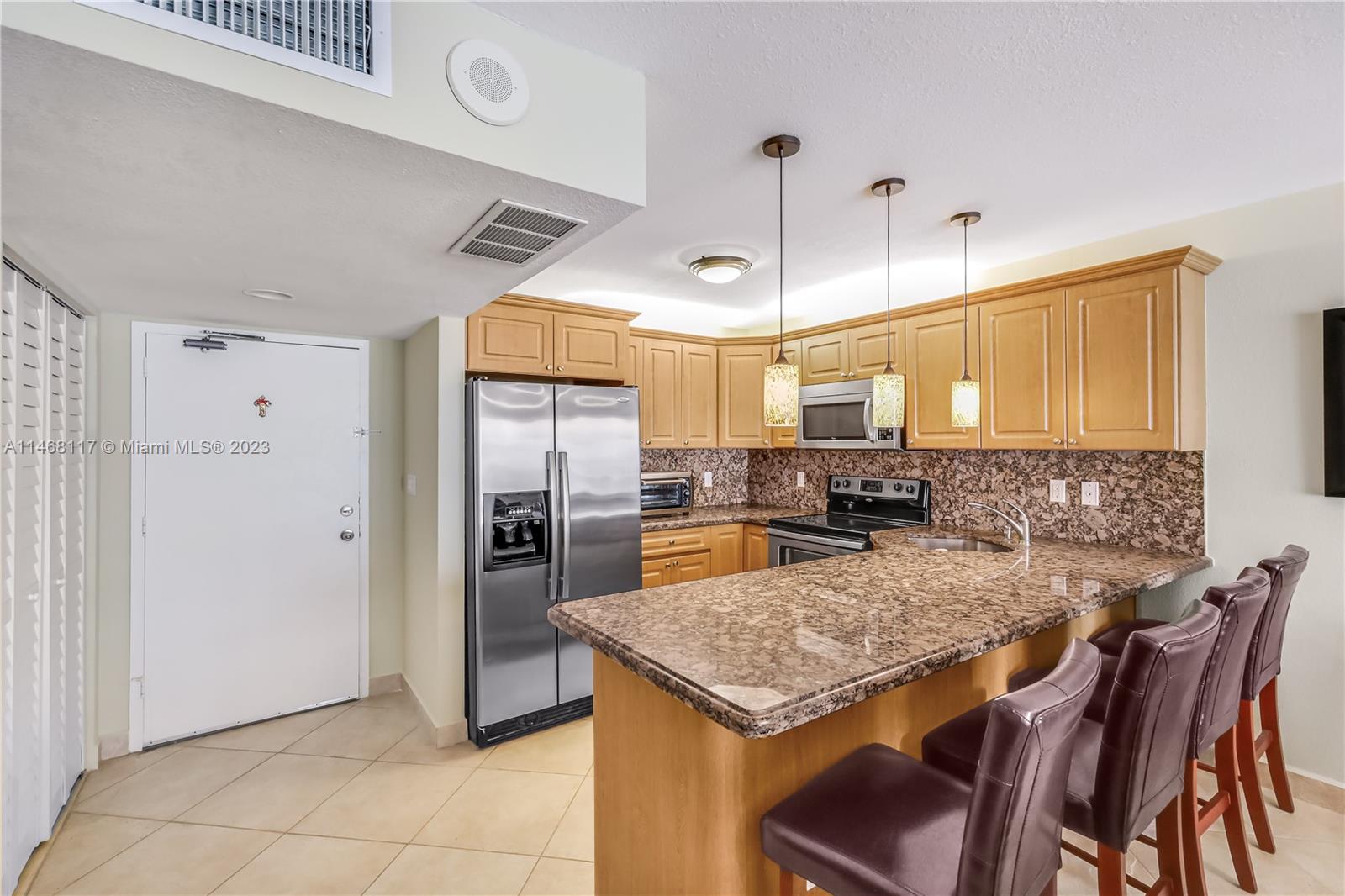 Gorgeous updated one bedroom one bathroom Oceanview w/balcony & parking! This one has it all: beautiful large format porcelain tile floors in diagonal pattern, open kitchen w/stainless steel appliances including flat top range & side-by-side refrigerator & granite countertops, updated bathroom with granite countertop & seamless glass shower doors. Great built-ins including 2 walk-ins (plenty of space for a washer dryer-which is allowed), w/updated doors, lighting, and blinds-perfect and ready to move right in. All in spectacular Oceanfront South of 5th Street Condo that has a new oceanfront pool deck with heated pool, all new elevators, and is completing a fabulous renovation including new impact windows & doors, new balcony railings, new hallways, new lobby, new entrance, new gym & more.