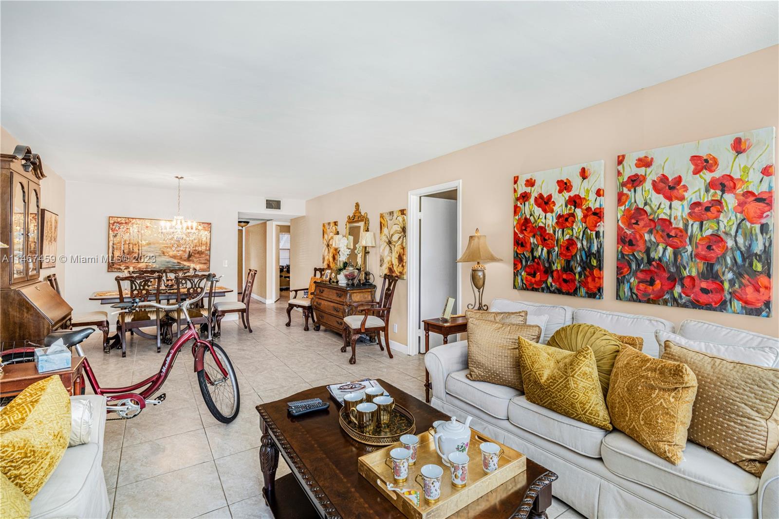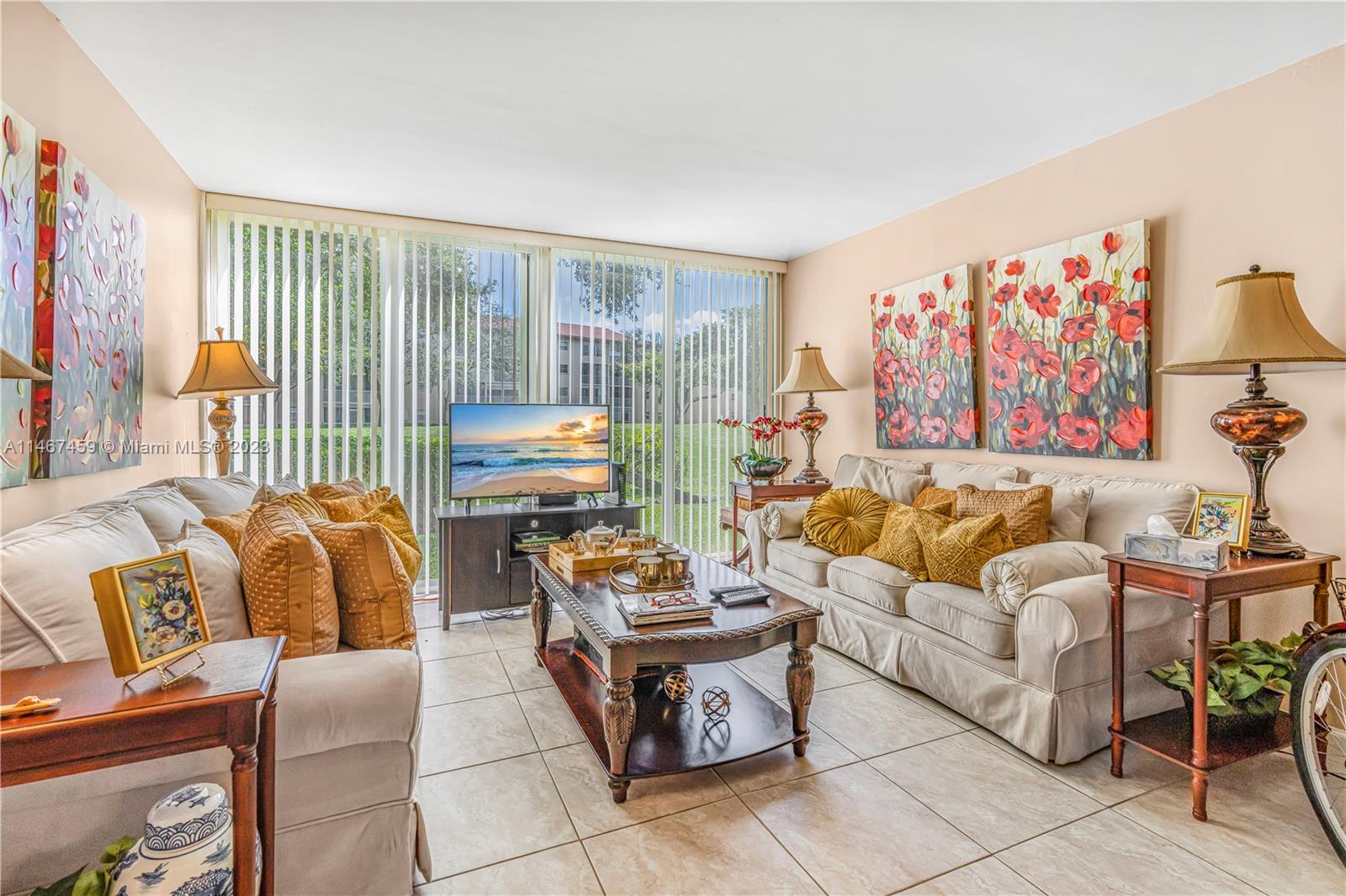 Clean smoke-free, pet-free first-floor unit with 2021 AC unit. Unit owners had popcorn ceilings removed, installed 18-inch tile throughout, and expanded the living area square footage by enclosing the balcony area. Washer/dryer inside the unit. All appliances in great working order. Excellent Primrose model that has a breakfast area by the kichen, formal dining area, and walk-in closets in both bedrooms. Conveniently located closer to the less-congested Pembroke Road Entrance. 55+Adult community with incredible amenities and services in the best area of Pembroke Pines near shopping malls and restaurants off of I-75 for easy commute. Unit can be rented.