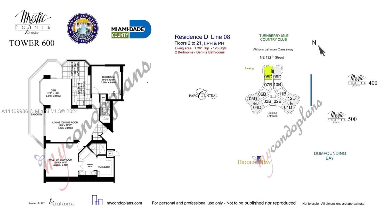 Mystic Pointe Tower 600 2 bedroom Condo For Sale