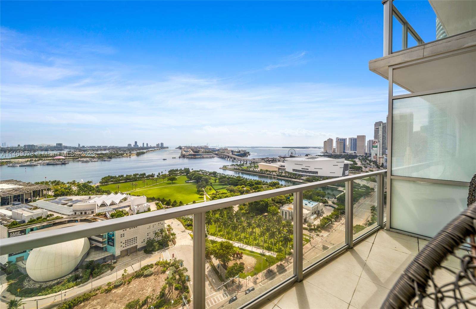 This luxurious 2 story loft style 1Bdr + Den with 2 newly renovated full baths is the perfect place to call "Home". This spacious unit comes with porcelain tile throughout, a completely renovated kitchen and 20" vaulted ceilings. Also enjoy an oversized warm and inviting balcony with views over looking the Biscayne Bay. The Marquis Condominium offers 24hr front desk services, valet and self parking, 2 pools and a gym. Don't miss this opportunity!