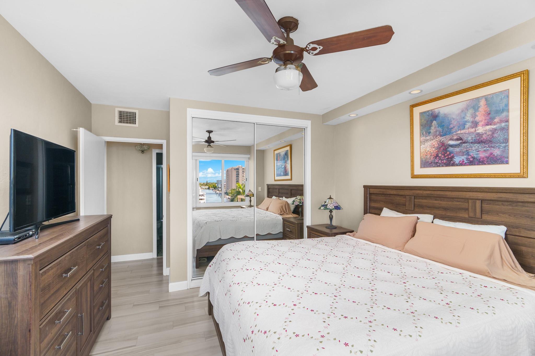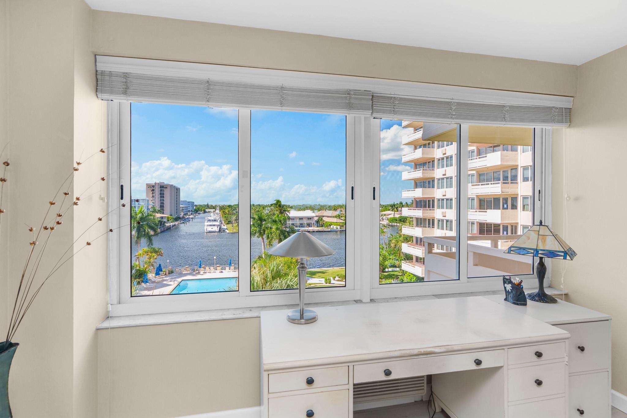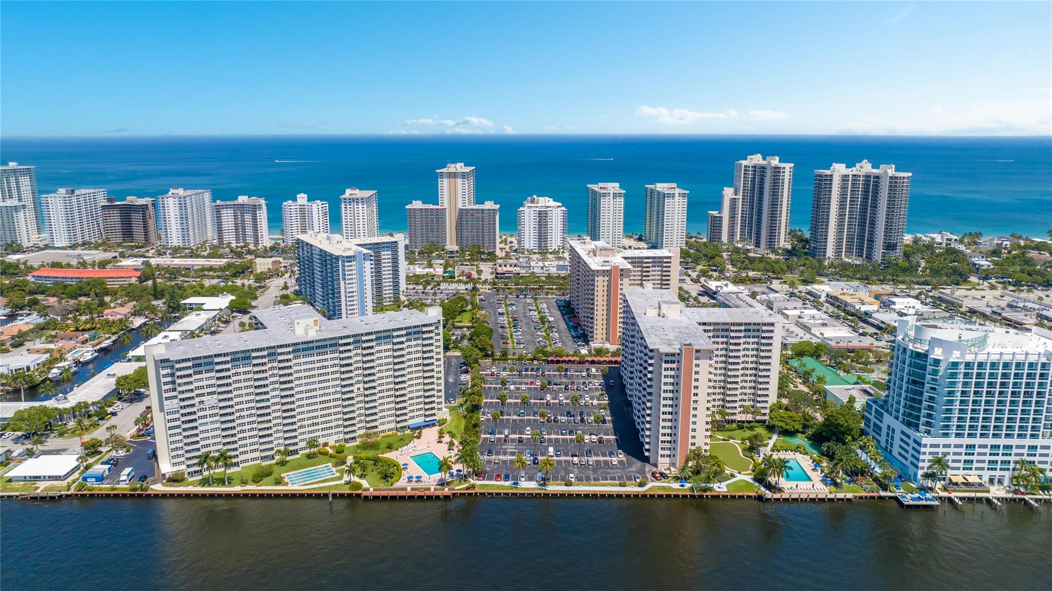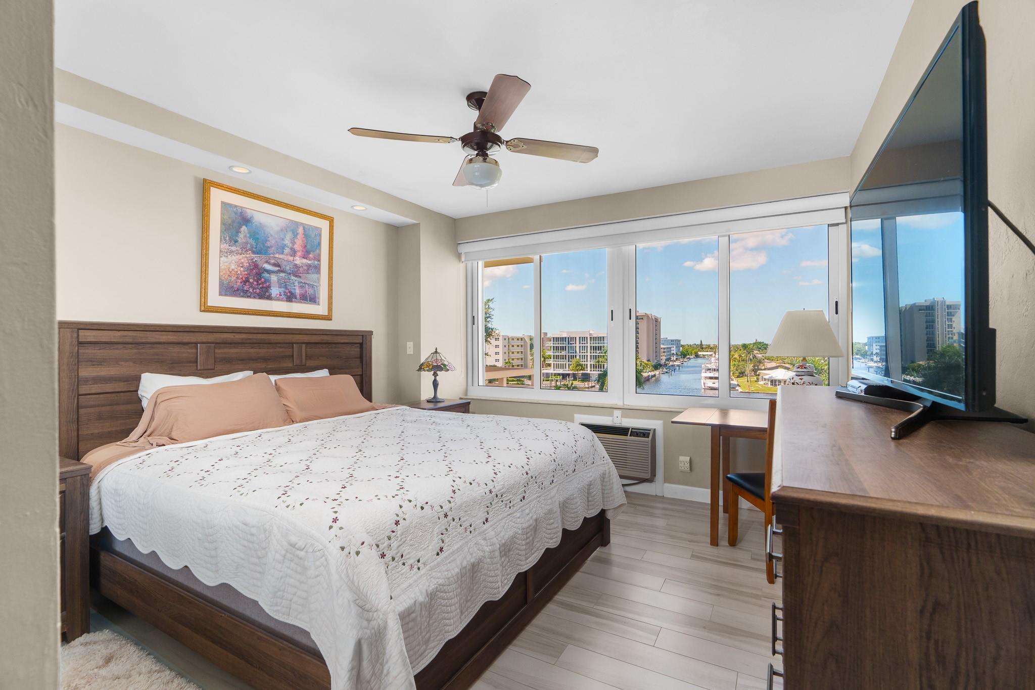 Enjoy stunning million-dollar intracoastal views and sunsets from every room! This move in ready home features an updated kitchen and wood plank porcelain tiles throughout. This home also offers hurricane impact windows, and central AC for added peace of mind. Coral Ridge Towers offers all the conveniences of beachside living, with the luxury of 24/7 security and professional onsite management. This 55+ Co-Op community is located on the barrier island with shopping, grocery stores and restaurants within walking distance. The building offers an array of amenities including a heated pool on the Intracoastal surrounded by lush tropical landscaping, gym, library, putting green, and more. You will love living here!