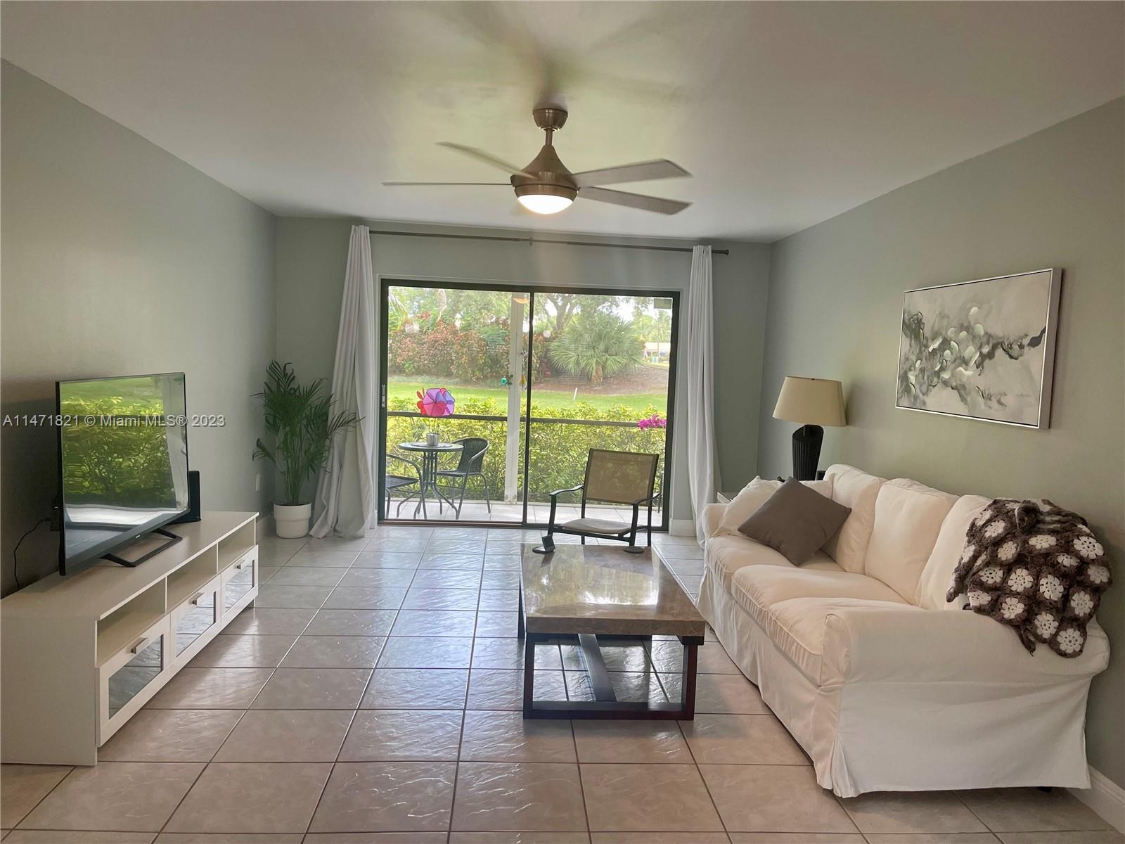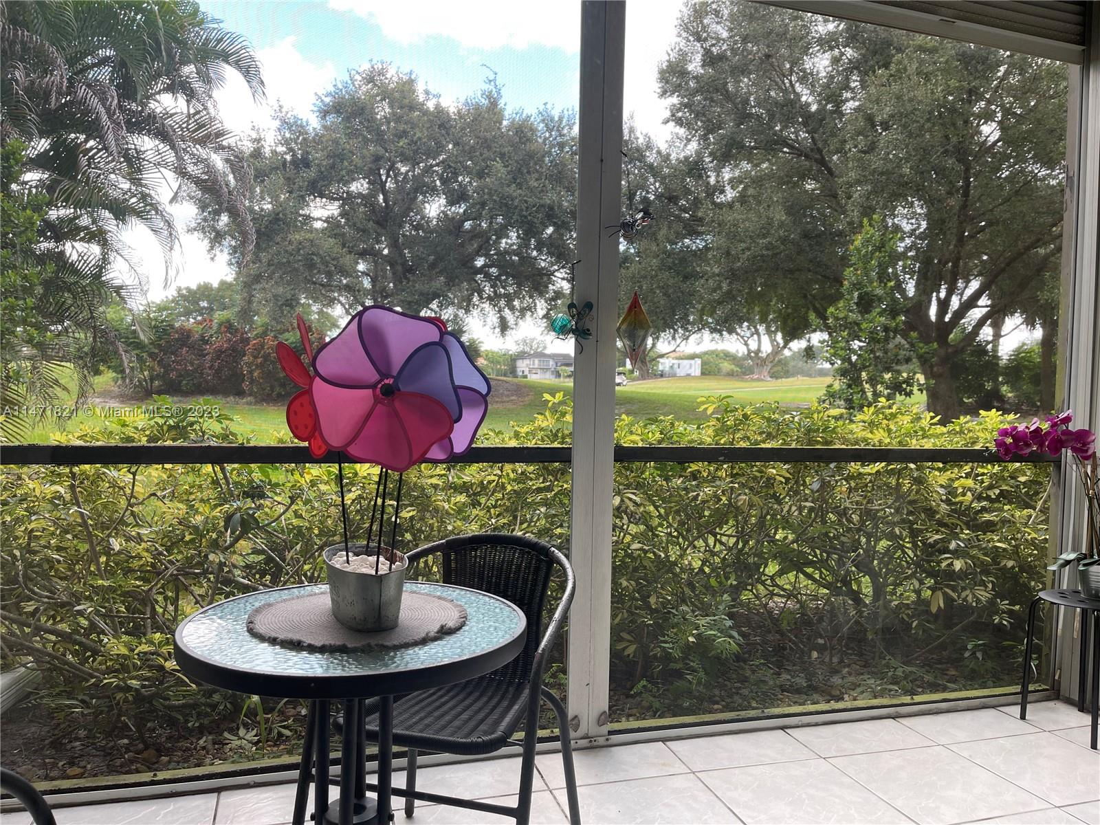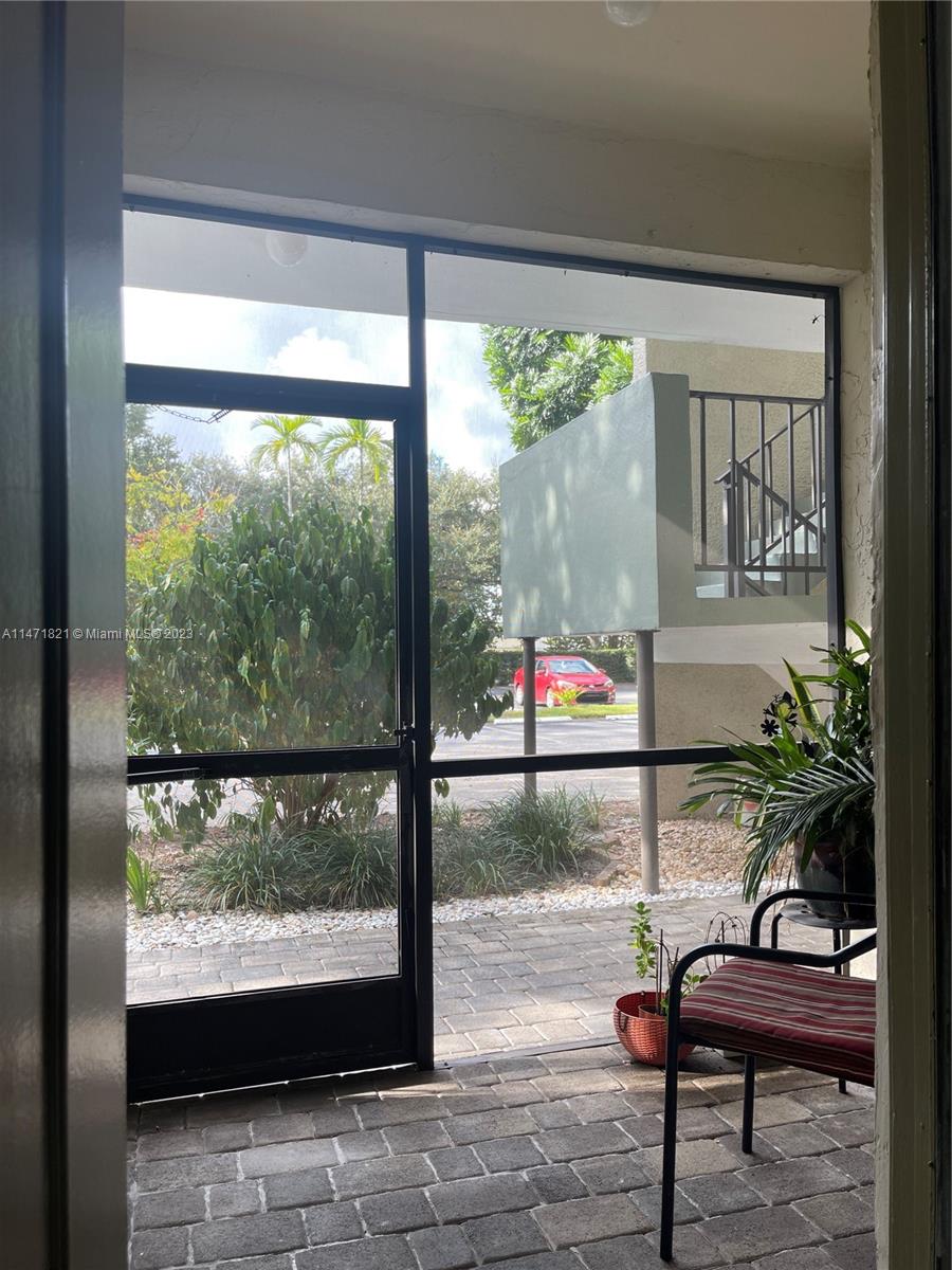 Stunning first floor corner unit 2 Bed/2 Bath-updated in 1320 total SQFT. Screened & tiled front and rear patio, with views of golf course and quiet garden. Open concept new kitchen, newer water heater, master bedroom has 2 large walk-in closets. Hurricane impact windows combined with shutters. Washer/dryer room as well as a storage room near unit. Two assigned parking spaces & guest parking just steps from your door, community pool. Water is included. Located close to major highways, shopping and restaurants. New roof, Condo living with the privacy of your own home. 2024 has sufficient reserves. Conventional 5% down payment financing is available.
