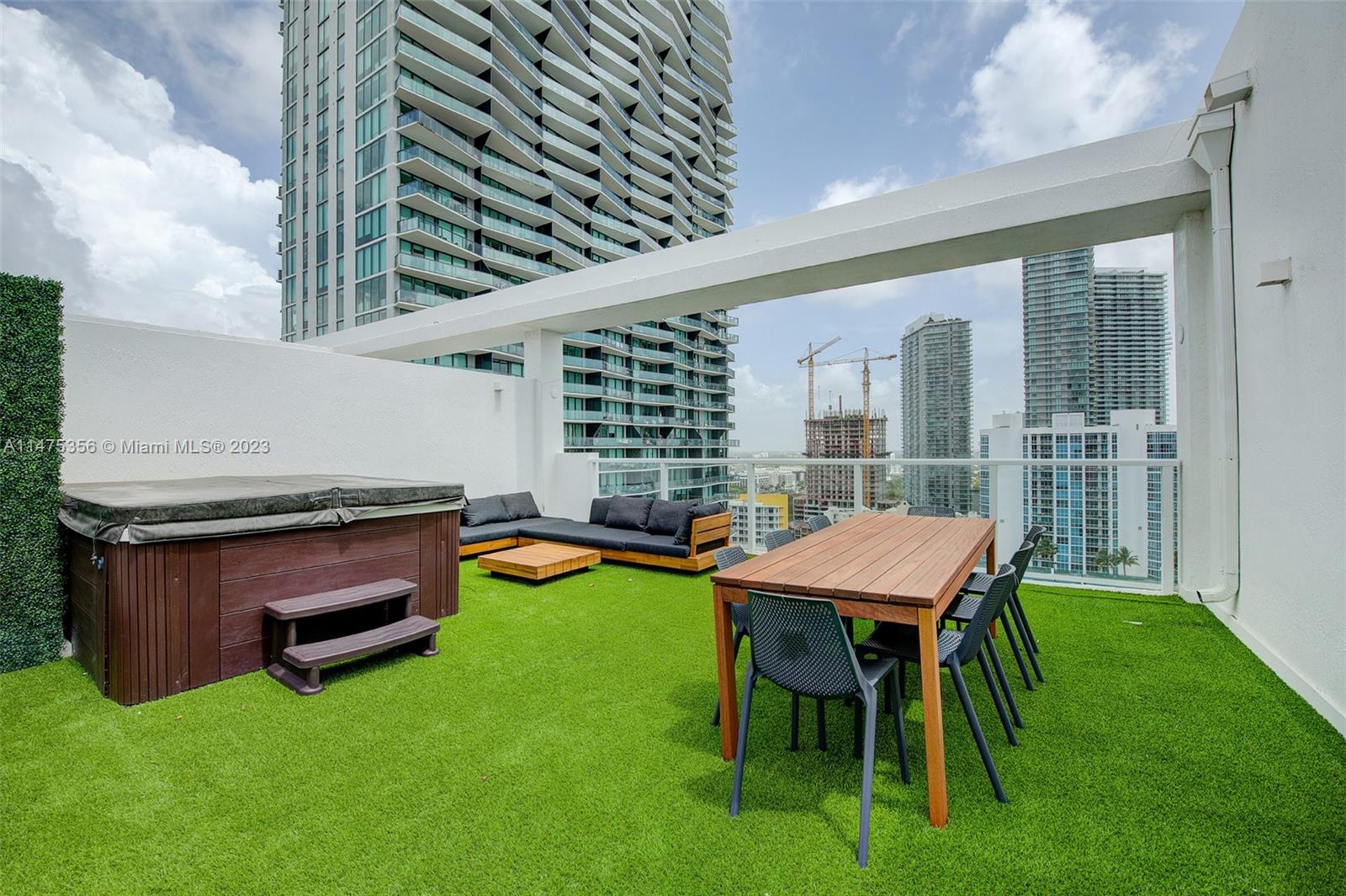 Furnished 2 bedroom 2 bathroom corner unit w/ extra tall ceilings, 2 balconies, floor to ceiling windows providing natural sunlight from morning - evening. Unit comes w/ a private (deeded) rooftop terrace furnished along with a hot tub!