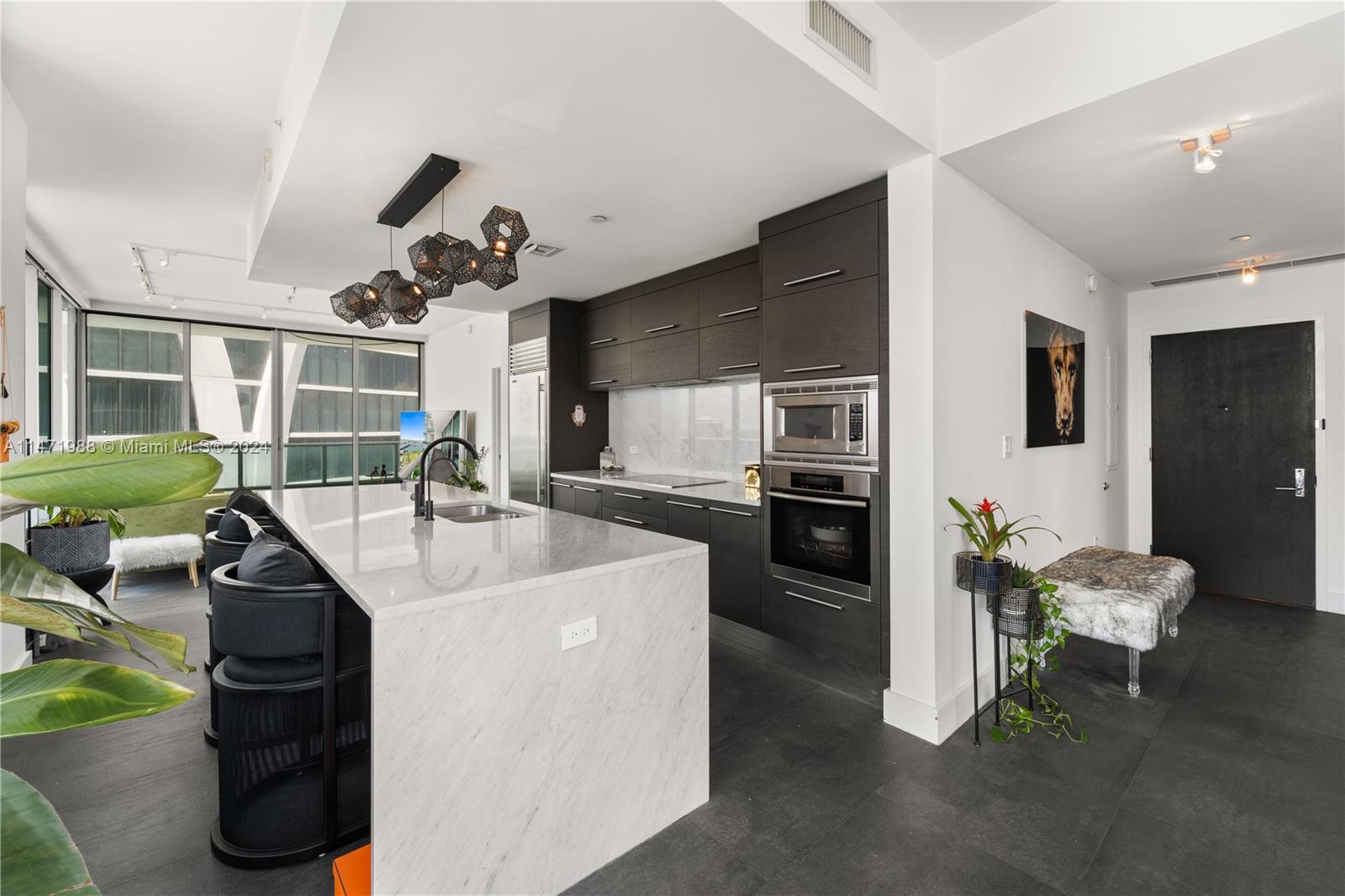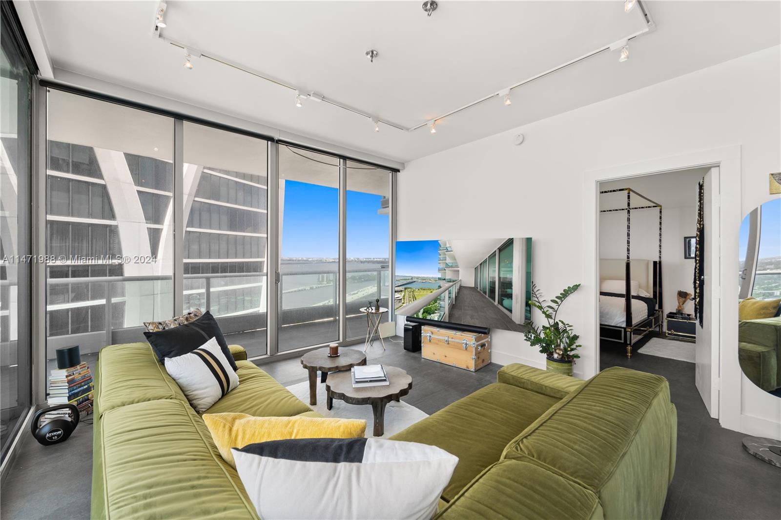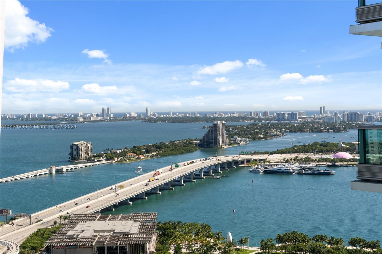 Your new sky home at 900 Biscayne! This 2 bed, 2 bath corner residence boasts bay & skyline views. 1300 Sq Ft of high-end living on Biscayne Blvd with airy open-plan living & dining, floor-to-ceiling windows with new motorized blinds, modern kitchen with new alkaline filter & new Miele washer/dryer, spacious bedrooms & stylish bathrooms. Take in the stunning scenery from the wrap-around balcony. The building offers top-notch amenities: gym, pool & 24-hour security. Prime location with easy access to Miami's best dining, shopping & entertainment.