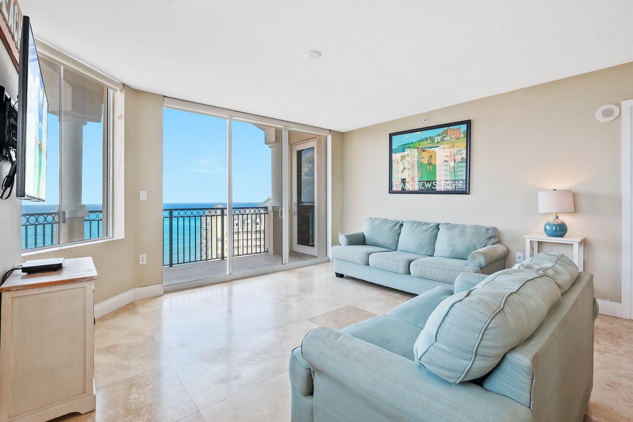 Experience breathtaking ocean views as you step into this PENTHOUSE CONDO. This 3/3 unit boasts a wrap-around balcony with endless views Impact glass windows & doors, this unit also comes with the convenience of two private parking spaces. Embrace a lifestyle of comfort & leisure with access to the resort-style amenities, private beach club, 24 hr security & valet parking. Elevate your living experience at The Vue, where every detail has been carefully curated to offer you the ultimate in coastal luxury