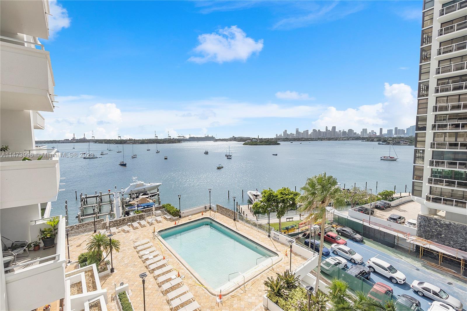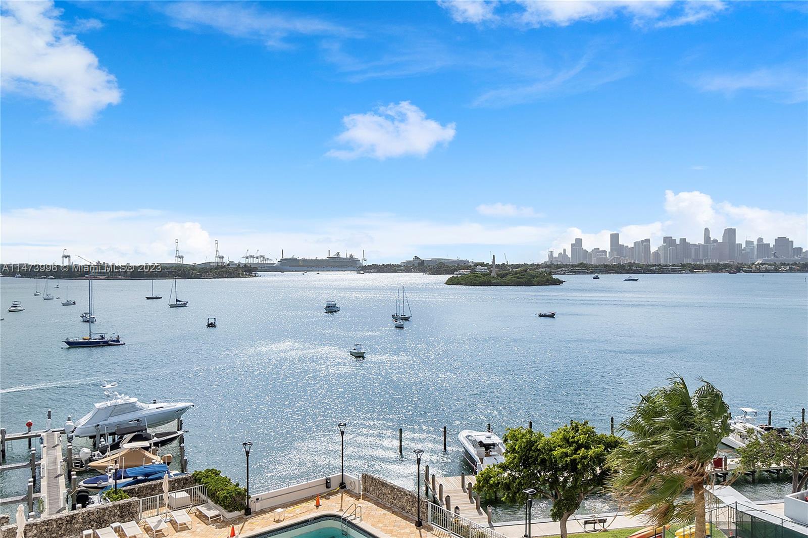 Located on tranquil Belle Isle, this spacious 2 bedrooms/2 full bathrooms condo offers breathtaking views of Biscayne Bay, Port of Miami and the world-famous Miami skyline. A good-sized kitchen with the potential to become a “chef’s kitchen”, spacious living room and dining room, a master bedroom with its own renovated ensuite bathroom, walk in closets and plenty of storage for both bedrooms. The second full bathroom has a newly renovated large stall shower. One parking space in a privileged location very close to the elevator in the main lobby. This condo unit is in very good condition and is ready to be updated. Costa Brava is completing an extensive renovation that has included new elevators, hallways and a marvelous designer lobby that will be completed by March/April 2024.
