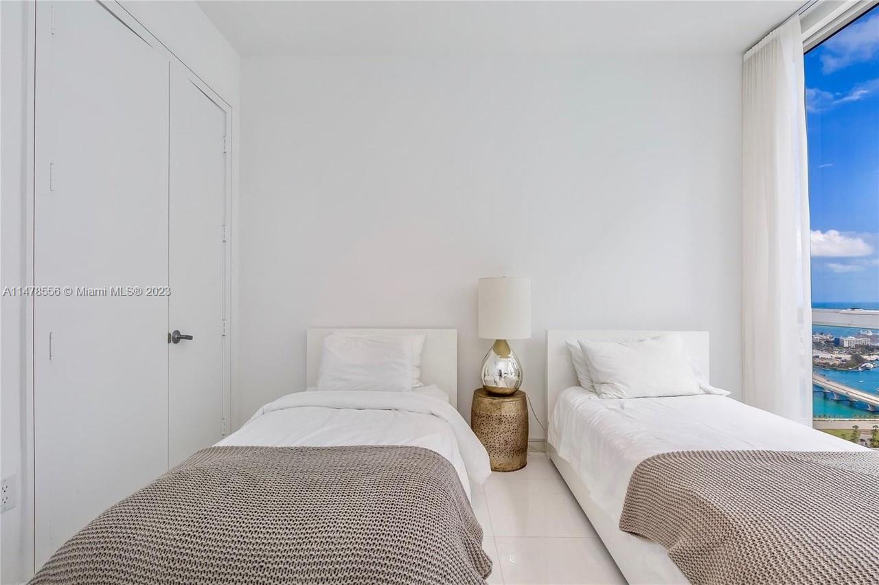 Spectacular water views from this gorgeous corner residence in Downtown Miami. This 3 bed/2.5 bath is offered fully furnished. The unit features floor to ceiling impact windows throughout, natural light, private foyer entrance, gourmet kitchen with Viking appliances, large terrace, motorized shades and blackouts, open floor plan and endless views of the water and city from all bedrooms. Building amenities include 24-hr concierge, 8,000 sqft spa and fitness center with views of Biscayne Bay, yoga/spinning studio & cardio room, full-range of spa treatments, sauna and steam room, tower service at pool deck, juice and snack bar offering, valet and secure self-parking. Tenant occupied until May 15, 2024 - Rented for $9,250/Month. Showings on Wednesdays and Saturdays