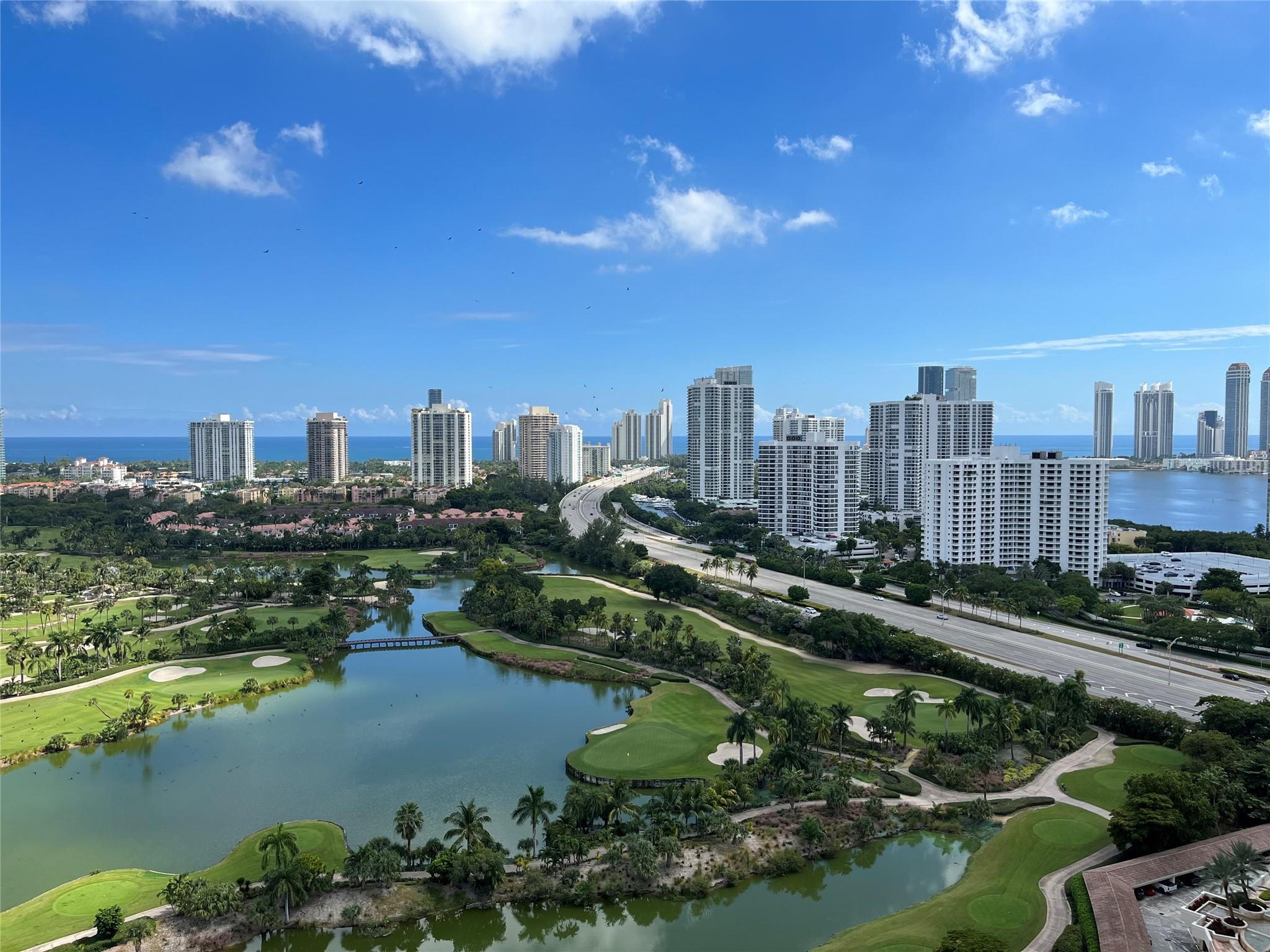 Back on Market… Great view...Turnberry on the Green, beautiful corner unit at with wrap around balcony overlooking the Golf view, ocean view and city of Aventura. Enjoy the best NE sunrise views from this charming light & bright 25th high floor unit. This unit features an open spilt floorplan with 2 bedroom & 2 bathroom. granite kitchen, Carpet floor thought out the unit. The unit in GOOD condition. washer & dryer & 1 parking space. You can enjoy all the amenities the city of Aventura offer. Turnberry on the Green is located in the heart of Aventura on the famous Turnberry Golf course, right in front of the Aventura Mall. The building offers amazing amenities: 24hr concierge, 24hs valet parking, swimming pools, Jacuzzi, 2 story fitness center, sauna. Fast closing.