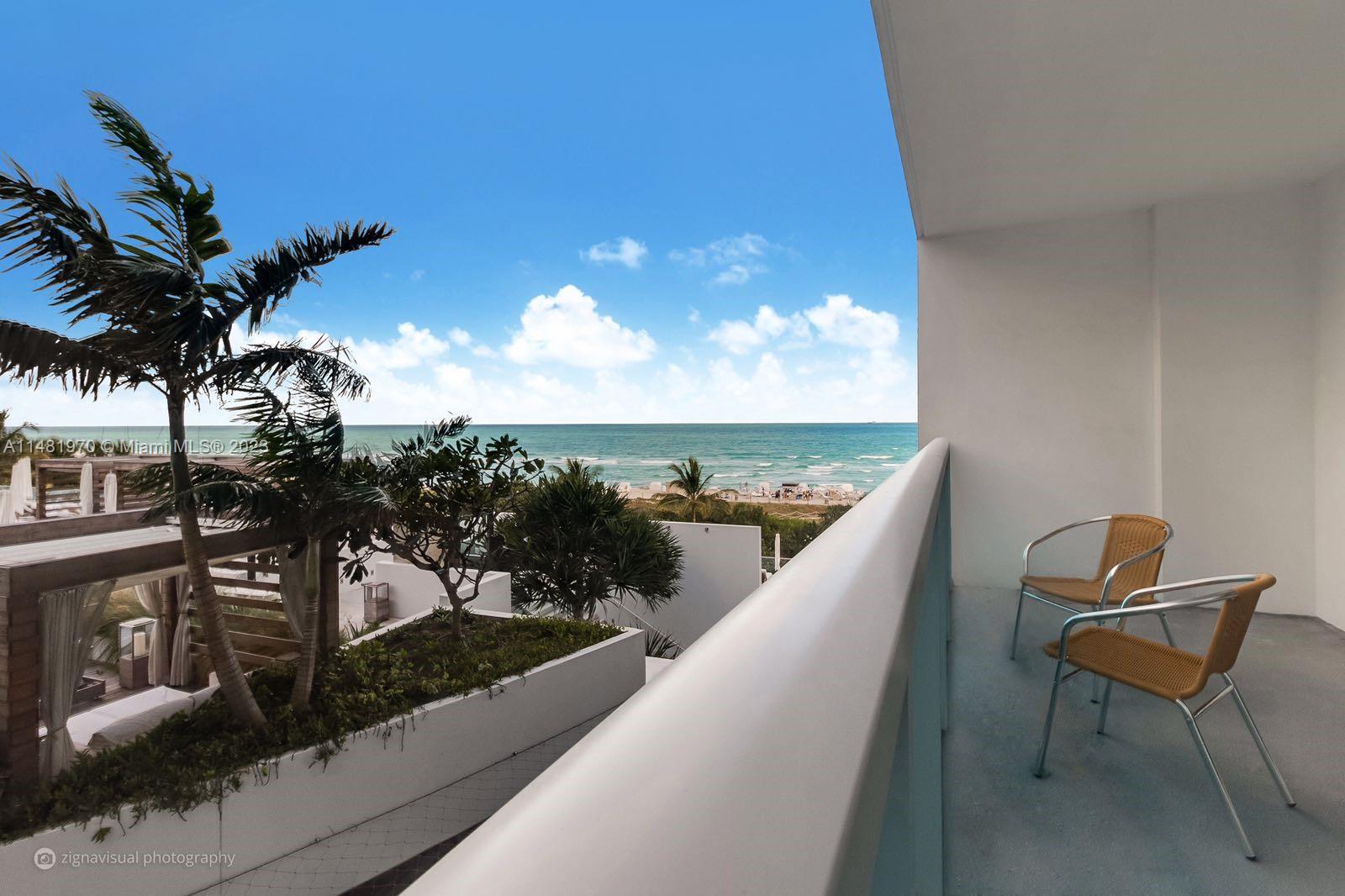 Modern oceanfront studio with a private balcony, offering stunning views of the 1 Hotel pool and ocean. Revel in the modern Italian designer kitchen, Sub-Zero appliances, and a stylish bathroom. Enjoy ample closet space, washer-dryer, and a chic, functional floor plan. Rent includes, cable, WiFi, water, and valet with 1 parking spot. As a Roney Palace resident, indulge in 1 Hotel's amenities: 3 oceanfront pools, a hot tub, beach service, and delectable dining options like Habitat, STK South Beach, Plnthouse, and Watr at the Rooftop. Stay fit with SoulCycle, Anatomy Gym, and pamper yourself at the spa, salon, or fashion boutiques. Live the South Beach dream in this extraordinary haven!
