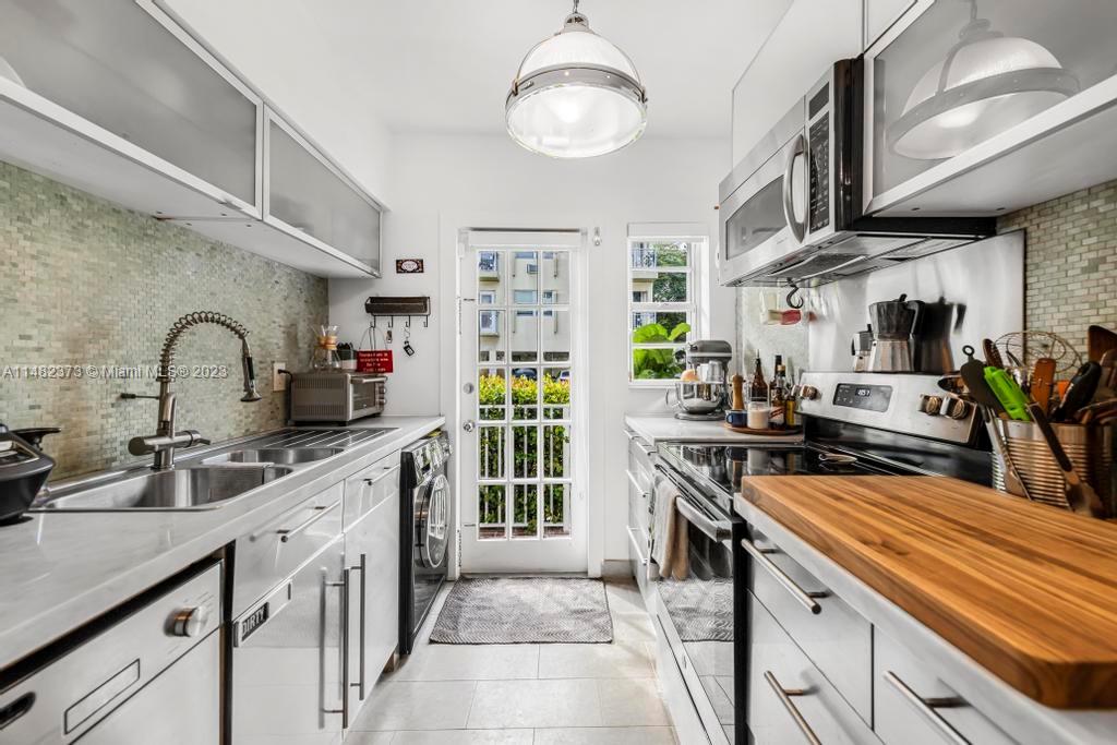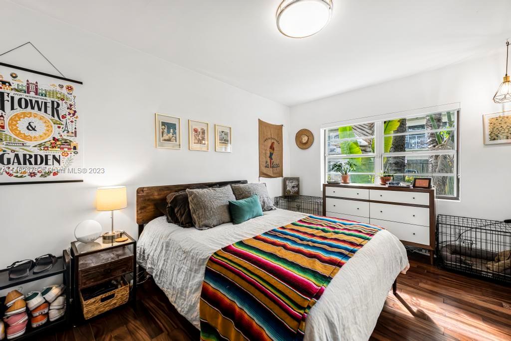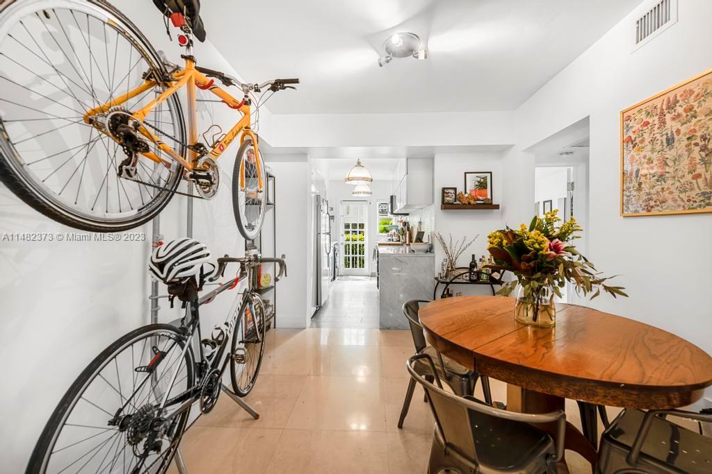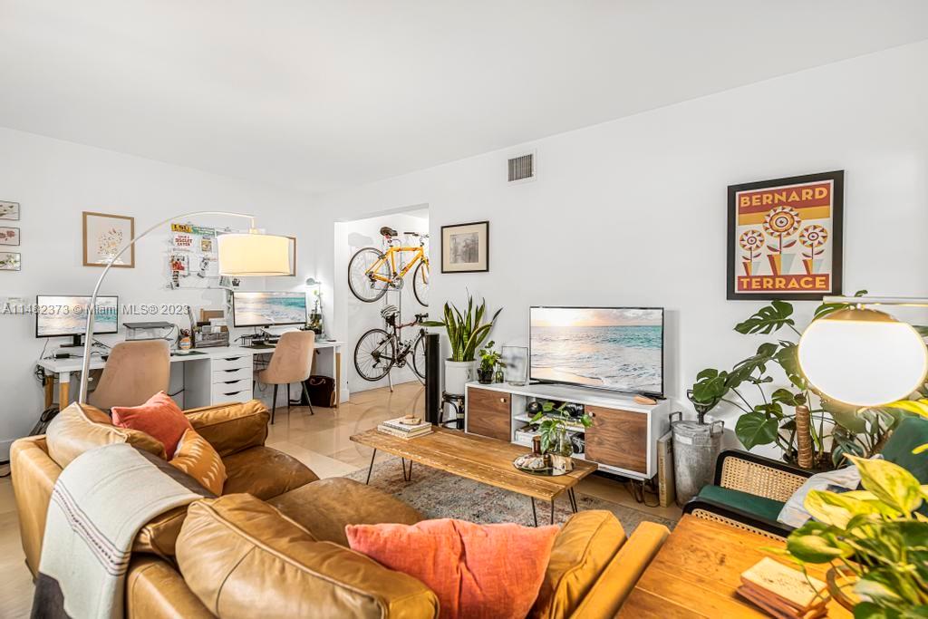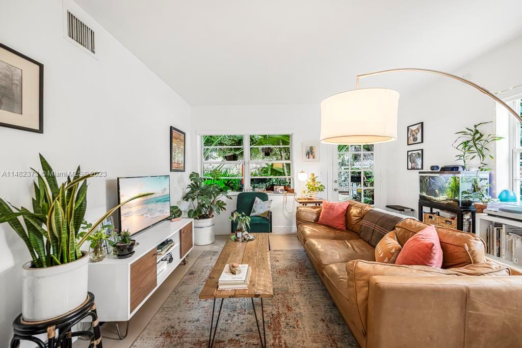 Unique and rarely available! Spacious garden unit located in Meridian Ave with a feel of a single family home. Beautiful large corner unit offers a lot of natural light, privacy, garden views, a semi private entrance to 9 street - short walk to the beach and Flamingo Park. Property is renovated with a large high end kitchen -lots of cabinet space, Carrara marble countertop, subway tile bathroom, marble floors, newer central air conditioning, washer/dryer inside the unit. Feels a LOT bigger than Sq ft. Pet friendly building.