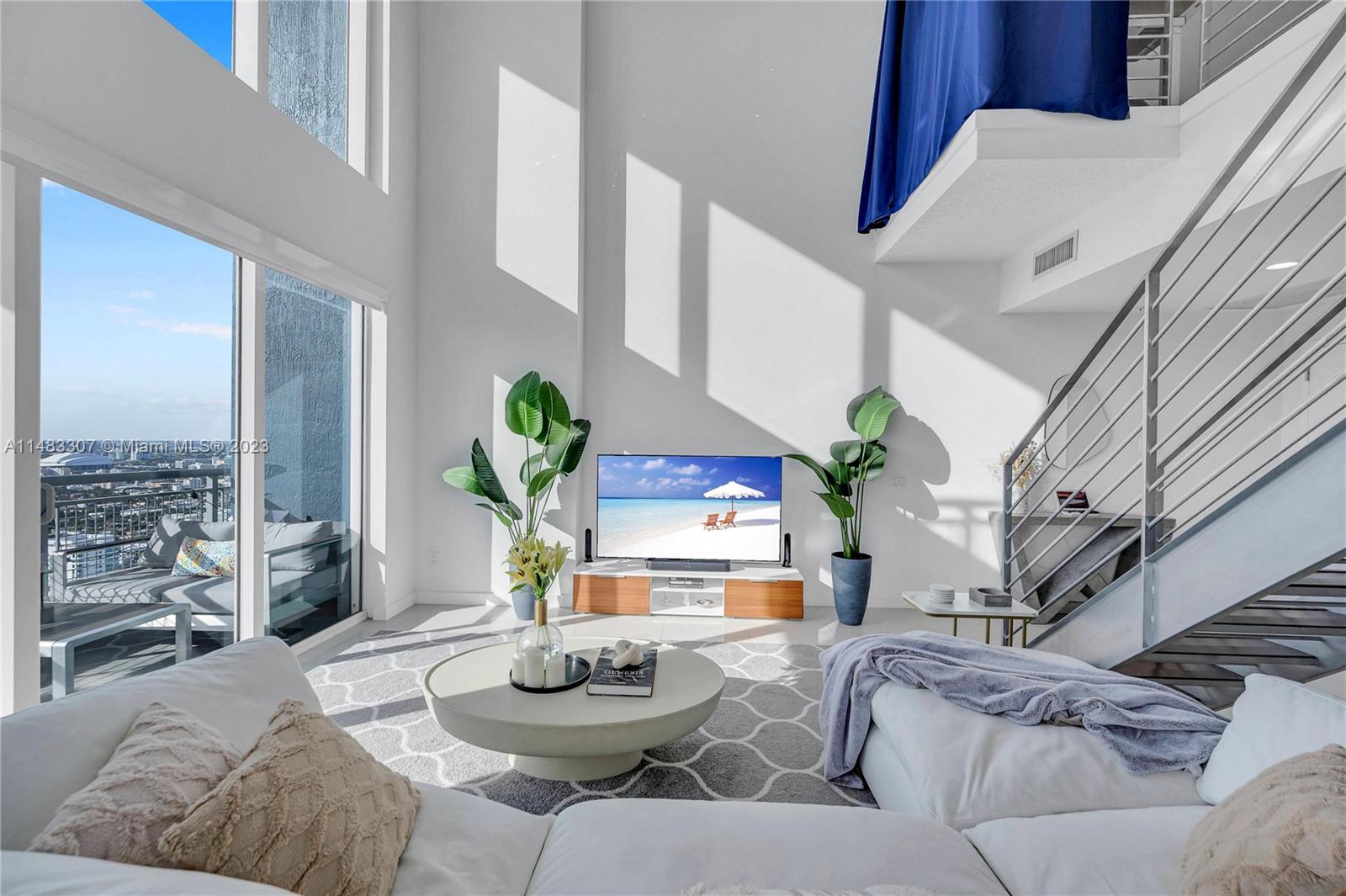 Presenting Unit #4405 at Infinity @ Brickell Condo. This highly desirable floor-plan offers spectacular panoramic views in a unique loft-style floorpan configuration. Step out onto the large terrace to marvel in some of the best views that Miami has to offer. The under-air living space area features 1417 square feet of well-designed space that is ideal for entertaining, whilst the upstairs quarters offer privacy. The primary bedroom upstairs features its own private balcony with glorious views of Biscayne Bay. More, the unit comes equipped with Google smart home capability including automated blinds. Condo amenities include gym, pool, lobby cafe, steam, sauna, & more. Complex is located in one of Brickell's most sought-after locales within close walking distance to Brickell's best spots.