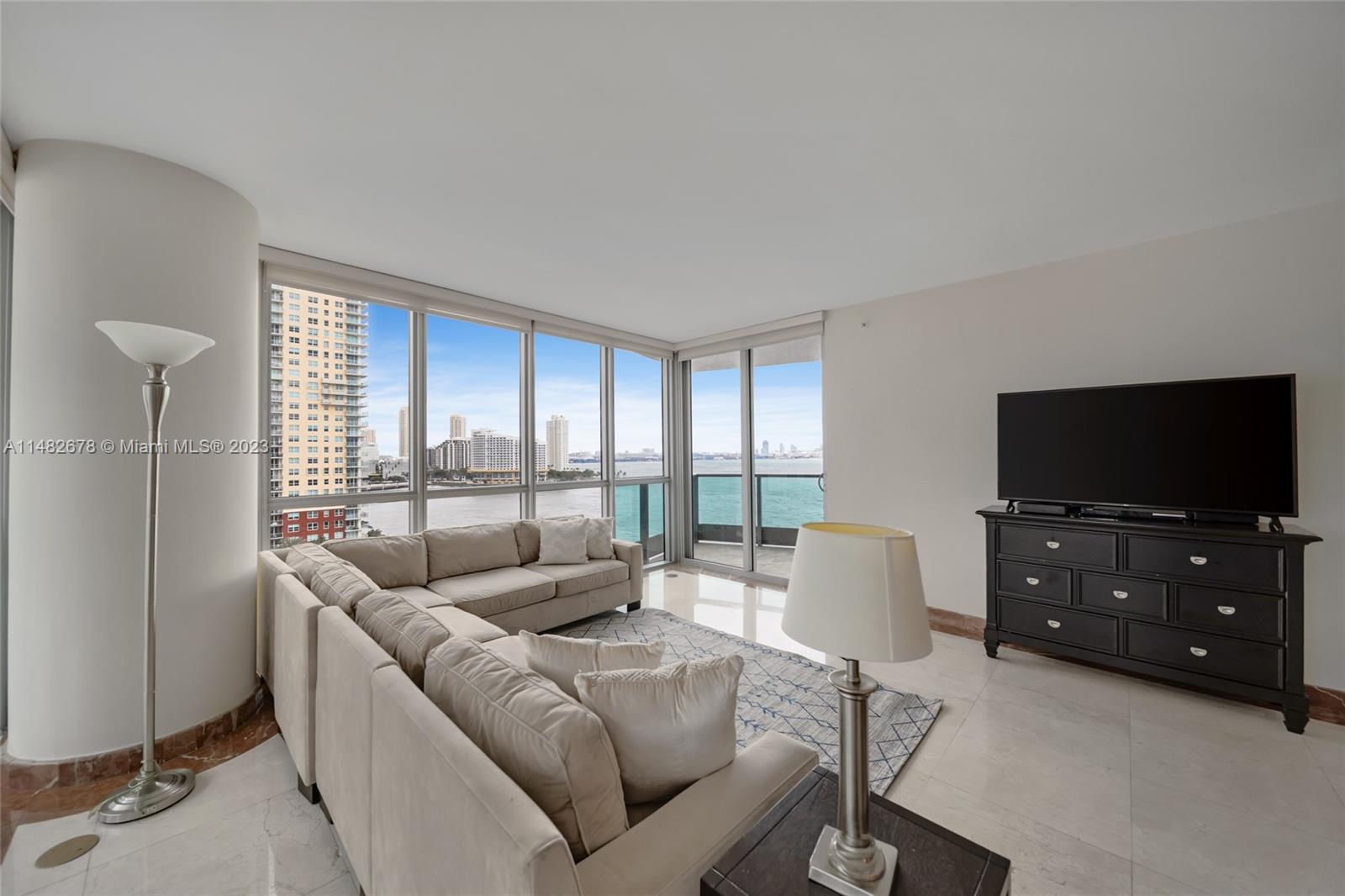 This stunning 2-bedroom, 2-bathroom corner unit offers breathtaking bay and city views from the living room. The interior features marble floors, a private elevator with fingerprint access exclusively for residents, a private foyer, and two generous balconies. The building provides 24-hour lobby attendance and valet service, a modern gym with bay views, and a stunning infinity-edge pool with cabanas.