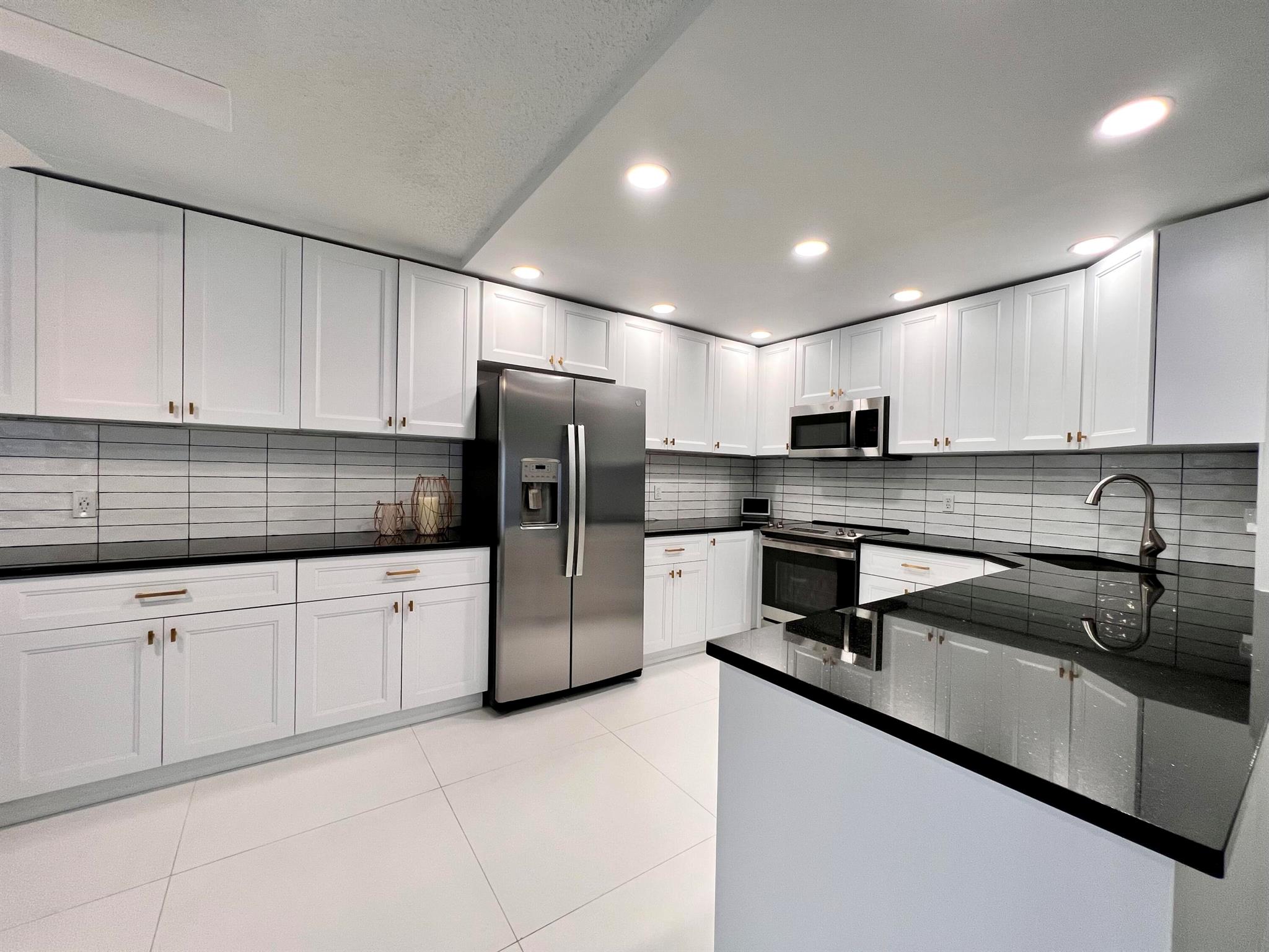 SPACIOUS & BEAUTIFULLY UPDATED IN 55+ CENTURY VILLAGE! 2/2 FIRST FLOOR In The Luxury Greenbrier Section of Century Village. Gorgeous Open & Updated Kitchen Featuring Expanse of White Cabinets & Granite Counters, Modern Subway Tile Backsplash, Stainless Appliances, and High-Hat Lights. Large Format White Tile Flooring Throughout. Beautifully Updated Baths. Large Bedroom Suite With Full Ensuite Bath, Walk-in Closet, And Access The Lanai. Updated Systems in 2022 (Trane AC & Rheem Water Heater). Luxury Building With Extra Storage, Trash Chutes, and Private Greenbrier Section Pool. Sold AS IS. Century Village is a 55+ Resort Style Community With So Much To Offer...