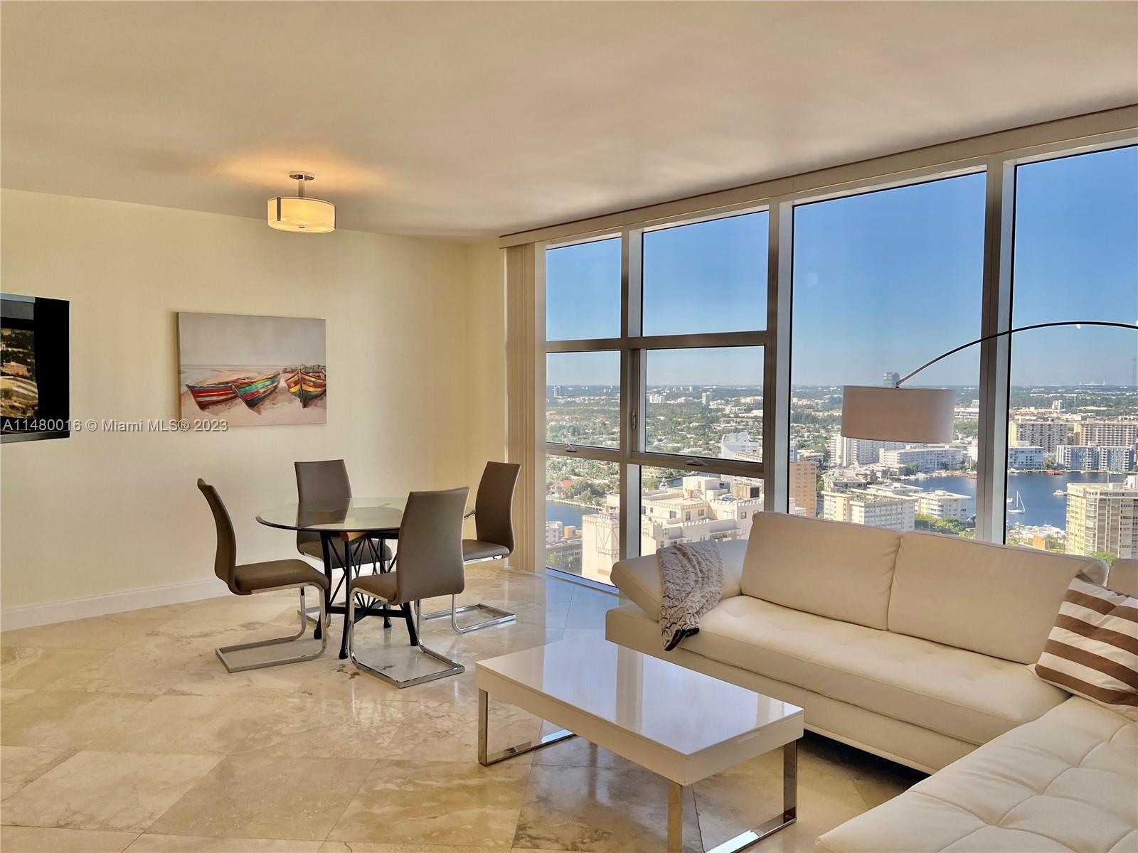 Gorgeous 1bed/1bath unit on 31 floor with spectacular WEST exposure and amazing City and Intracoastal views. Furniture negotiable. European-style kitchen new Refrigerator and Dishwasher , new washer and dryer , granite countertops, and marble flooring in Living area and kitchen. Wood Pergo flooring in master bedroom.. Parking space on first floor( G59) . Amenities include state of an art fitness center, 5 resort-style pools, a full spa, a restaurant, valet parking, a concierge, beach service, covered parking, and 24-hour security. Can be rented 12 times a year. Minutes to retail stores, restaurants and GULF STREAM RACE TRACK AND CASINO.