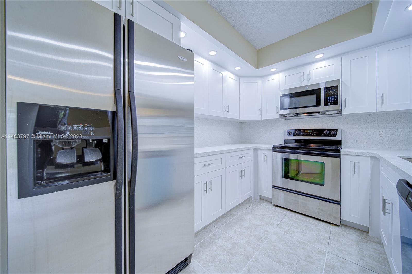 Welcome to this newly updated and spacious condo on the first floor. Tiled throughout and freshly painted, this bright unit is located in a very private and serene area within the village.The kitchen and both of the bathrooms showcase brand new pristine white shaker cabinets, new quartz countertops/backsplash, new sinks, new faucets, and new recessed lighting. The screened in porch features peaceful garden views. All windows have new blinds that allow for plenty of natural light to enter through or for privacy. Other upgrades include a brand new AC unit, dishwasher, microwave, and ceiling fans. Century Village is a 55+ gated community with an active adult lifestyle. All residents can indulge in endless amenities, yearound events, and social activities. Video Available. Priced to sell.