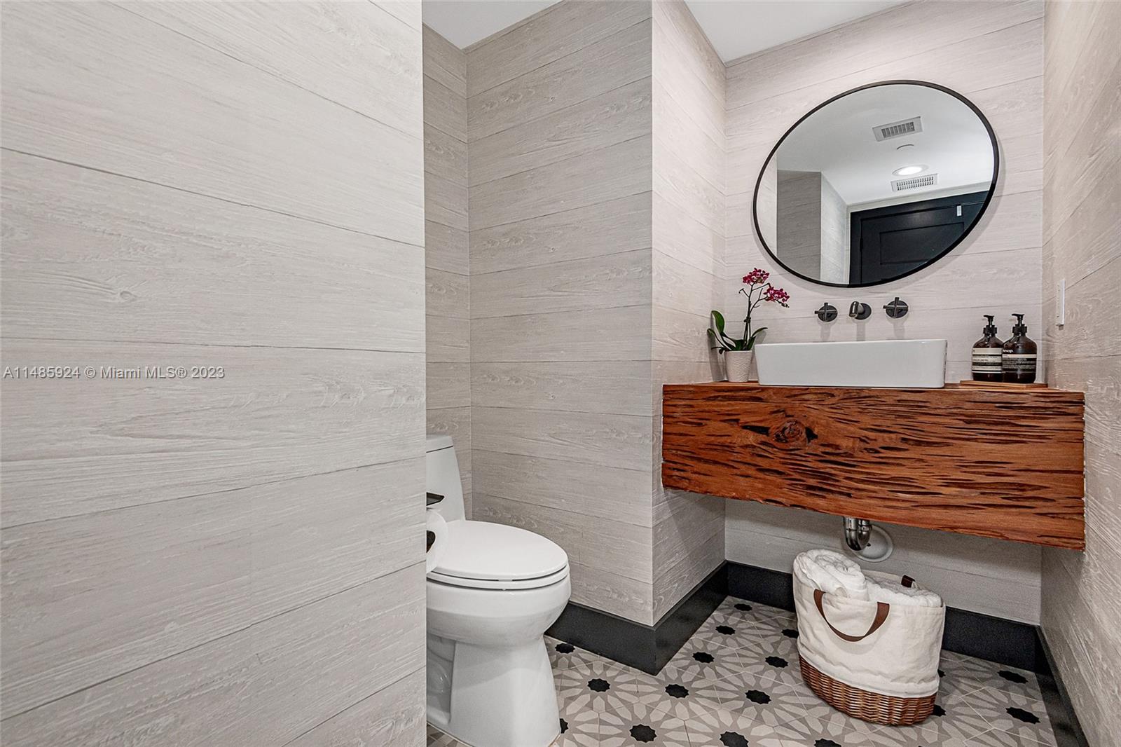 Stunning penthouse with a private rooftop deck at the Absolute Loft designed by Kobi Karp. The 18-foot ceilings make the space feel incredibly open and luxurious. The attention to details in the remodeling, from the custom kitchen to the handmade Moroccan tile backsplash to the smart oven, reverse osmosis water filter, custom reclaimed wood shelves over quartz counters, custom milled bathroom vanities and custom doors show a sophisticated touch. Both the newly added large pantry and storage closet downstairs allow for ample storage. Large master bedroom and bath now with two custom closets located on the second floor. The private rooftop with 360-degree views with water, electric, artificial turf is a major standout, perfect spot to enjoy the Miami Beach scenery.