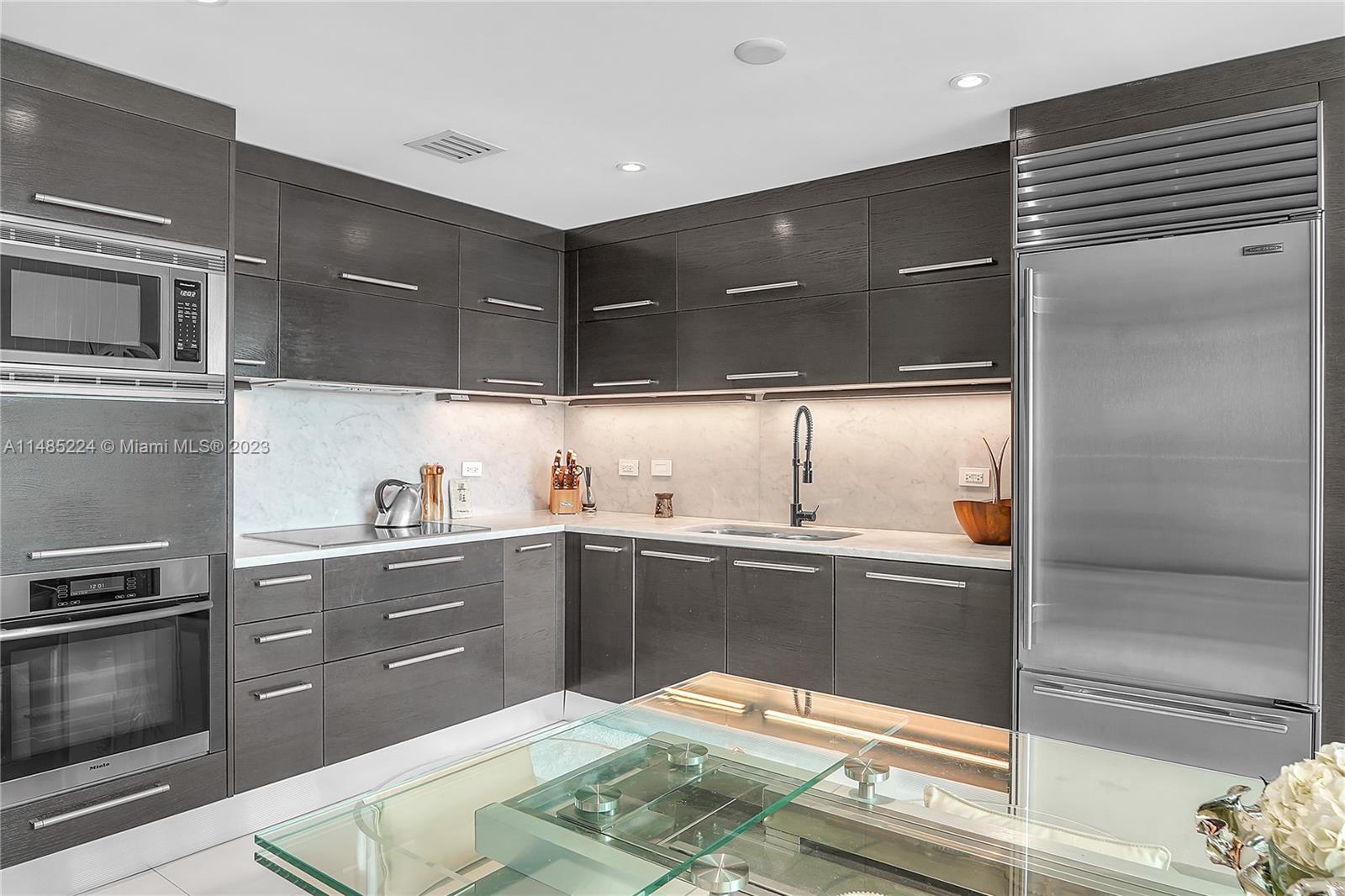 Direct unobstructed bay views from this townhome with 20ft ceilings and 2 balconies. 3 Bedrooms + glass enclosed loft which is the perfect in-home office or 4th bedroom, 3 full baths. Open kitchen features Miele, Sub Zero appliances including wine cooler. Master bedroom features custom built walk-in closet, ensuite bath with bidet toilet and private balcony. Numerous upgrades include Lutron Casseta smart lighting, custom doors, updated bathroom fixtures and new AC. Truly move in condition. Resort style amenities include 2 pools, outdoor kitchen and bar, two gyms, spa, business center and movie theatre. Building just completed exterior restoration and painting. No assessments.