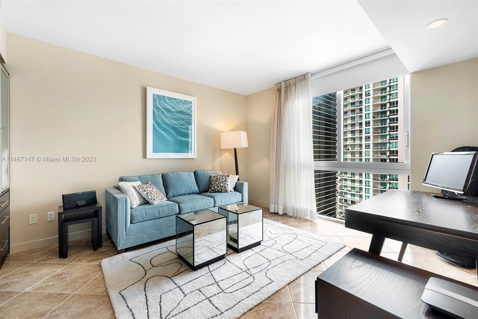 Pristine 2 bedroom 2 bathroom condo with open views of the bay and pool. Corner unit in fully amenitized building with security 24 hour valet, concierge, two pools, state of the art fitness center, drycleaning and a cafe. Minutes from Miami arena, Brickell avenue the Miami International Airport and close access for Miami Beach.