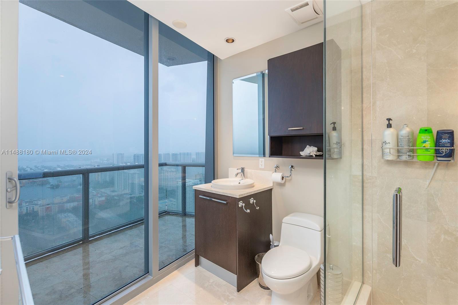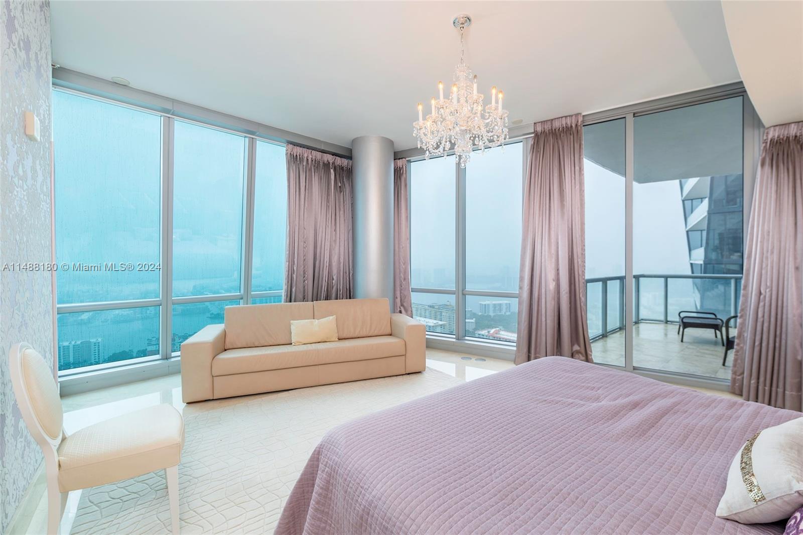 Large 4,677 sq. ft. 2-STORY 4BR/4.5BA PENTHOUSE CONDO IN SOUGHT-AFTER JADE OCEAN (designed by world-famous architect Carlos Ott). Magnificent unit with direct access elevator which delivers you directly your own private foyer. An array of awe-inspiring water views to relax and sooth your day while providing sensational night skies for tranquil evenings. Plenty of parking (4 assigned spaces). Stunning kitchen that will make your chef blush; convenient center cooking island and separate breakfast bar. For a proper meal, enjoy your formal dining room with views of the intercostal and surrounding area. Soaring 20+ foot ceilings with 4 large balconies to enjoy the refreshing sea air. Jade Ocean offers world-class service; 2 infinity-edge pools, exclusive beach service, concierge, & much more!