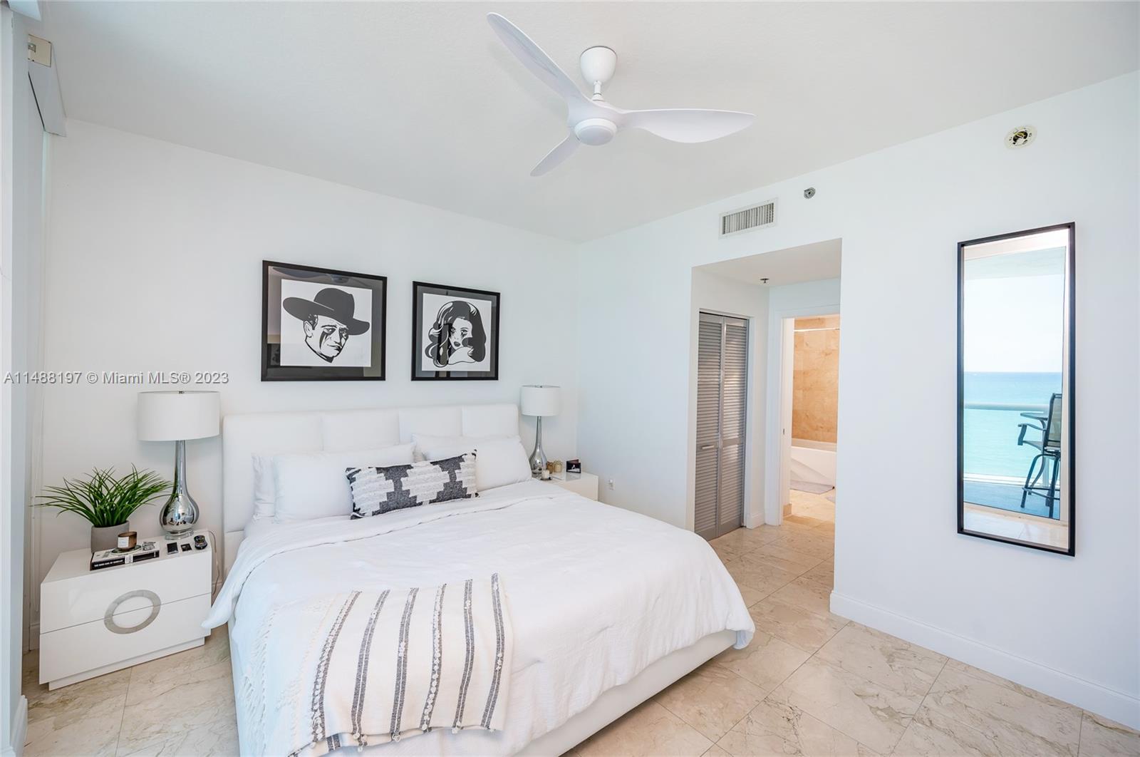 Live on Millionaires Row in this spectacular unit with direct ocean views. Take in the ocean breeze as you sip your morning coffee on the balcony and watch the beautiful daily sunrise. This spacious 2/2 offers a fantastic floor plan with marble flooring throughout, custom built-in cabinetry, and ocean views from every room. The kitchen is ideal for any chef featuring an eat-in bar, granite countertops, and stainless steel appliances. Two large bedrooms and two baths make this a perfect place to call home. Investors can also lease short term & seasonally. Resort like amenities include 24-hour security, heated pool & spa, fitness center, business center, media room, recreational room, 24-hour concierge services. Hurry this opportunity to own on Collins Avenue is priced to sell quickly.