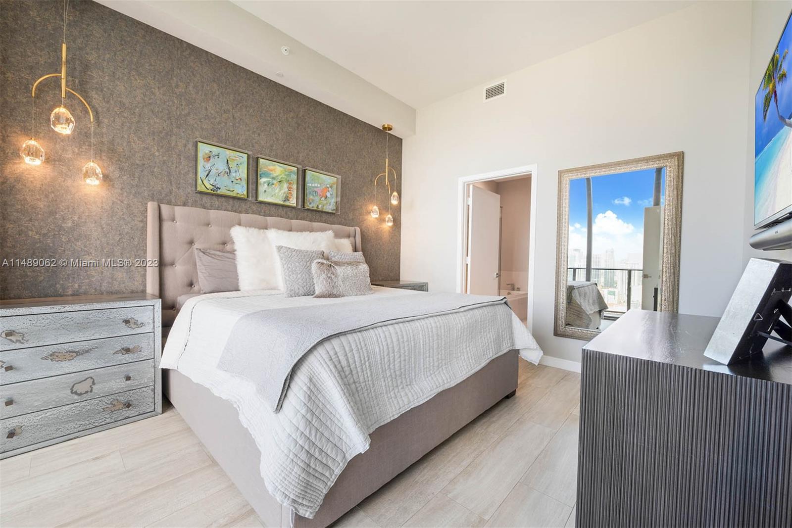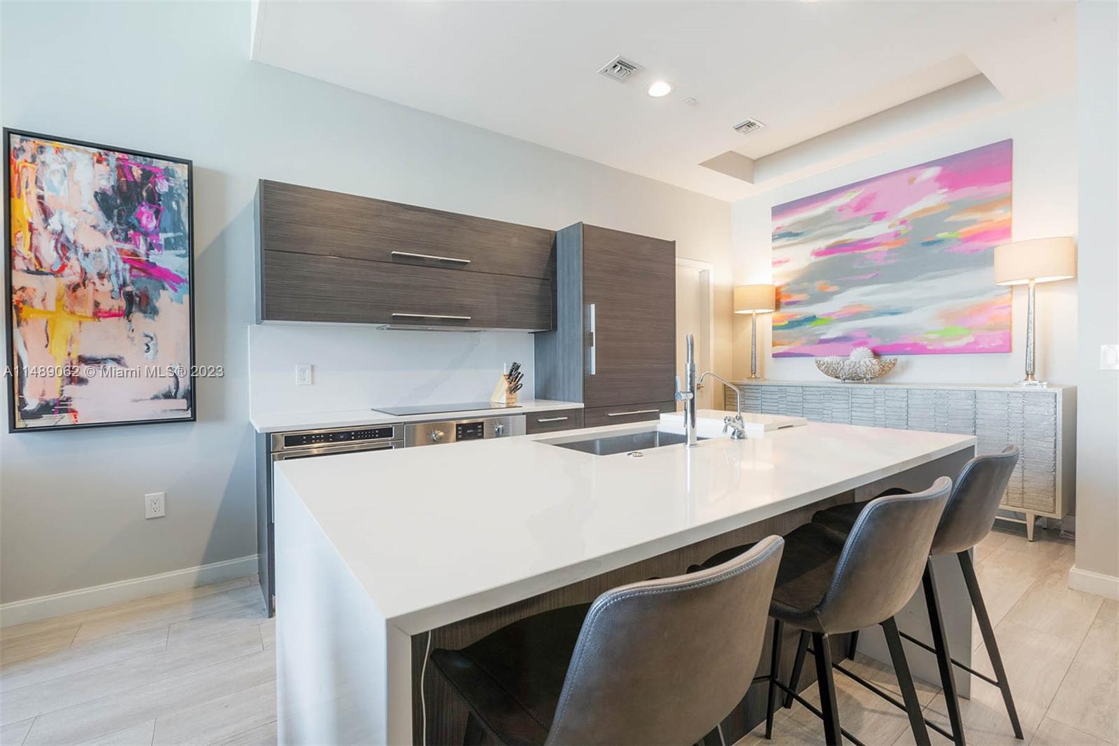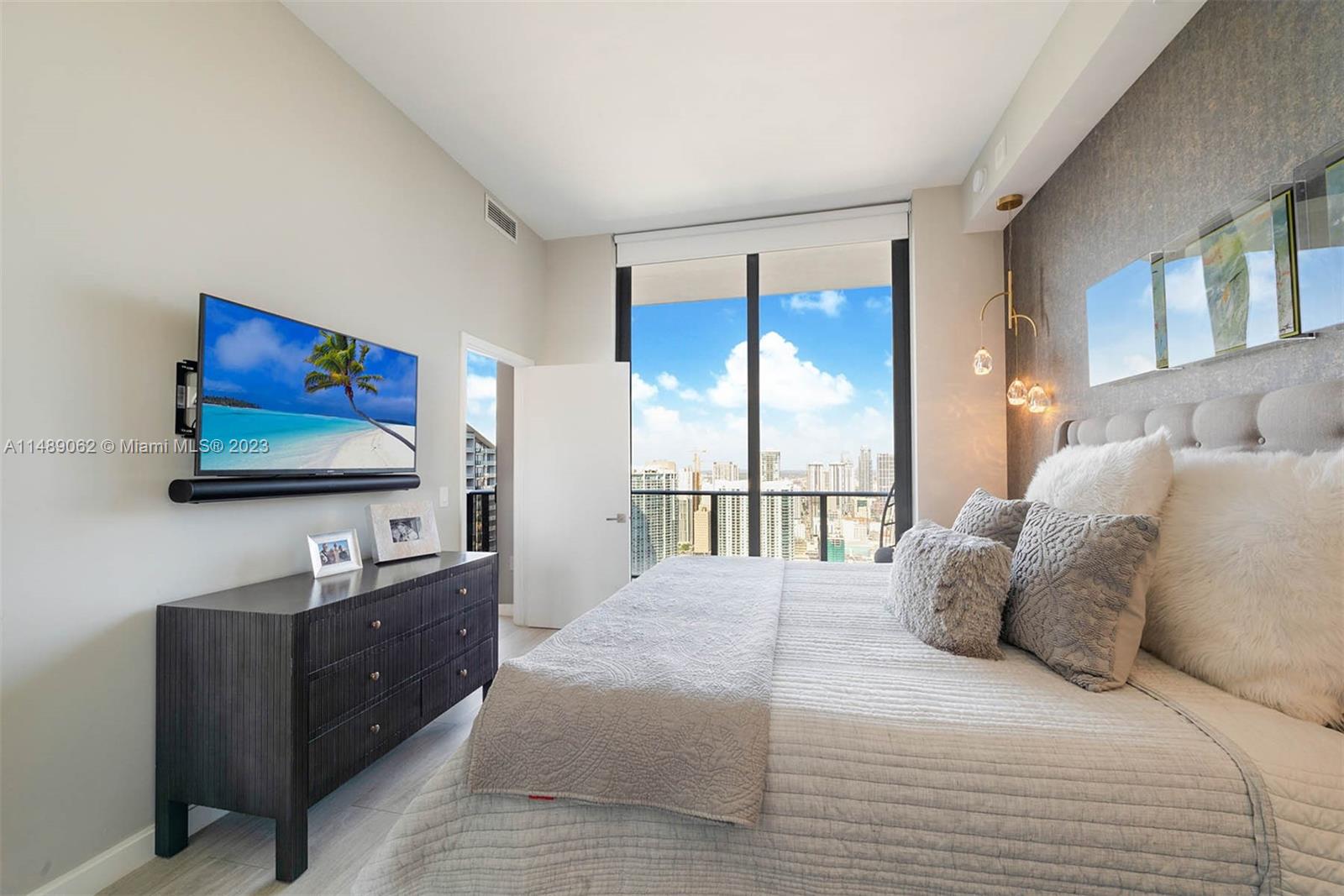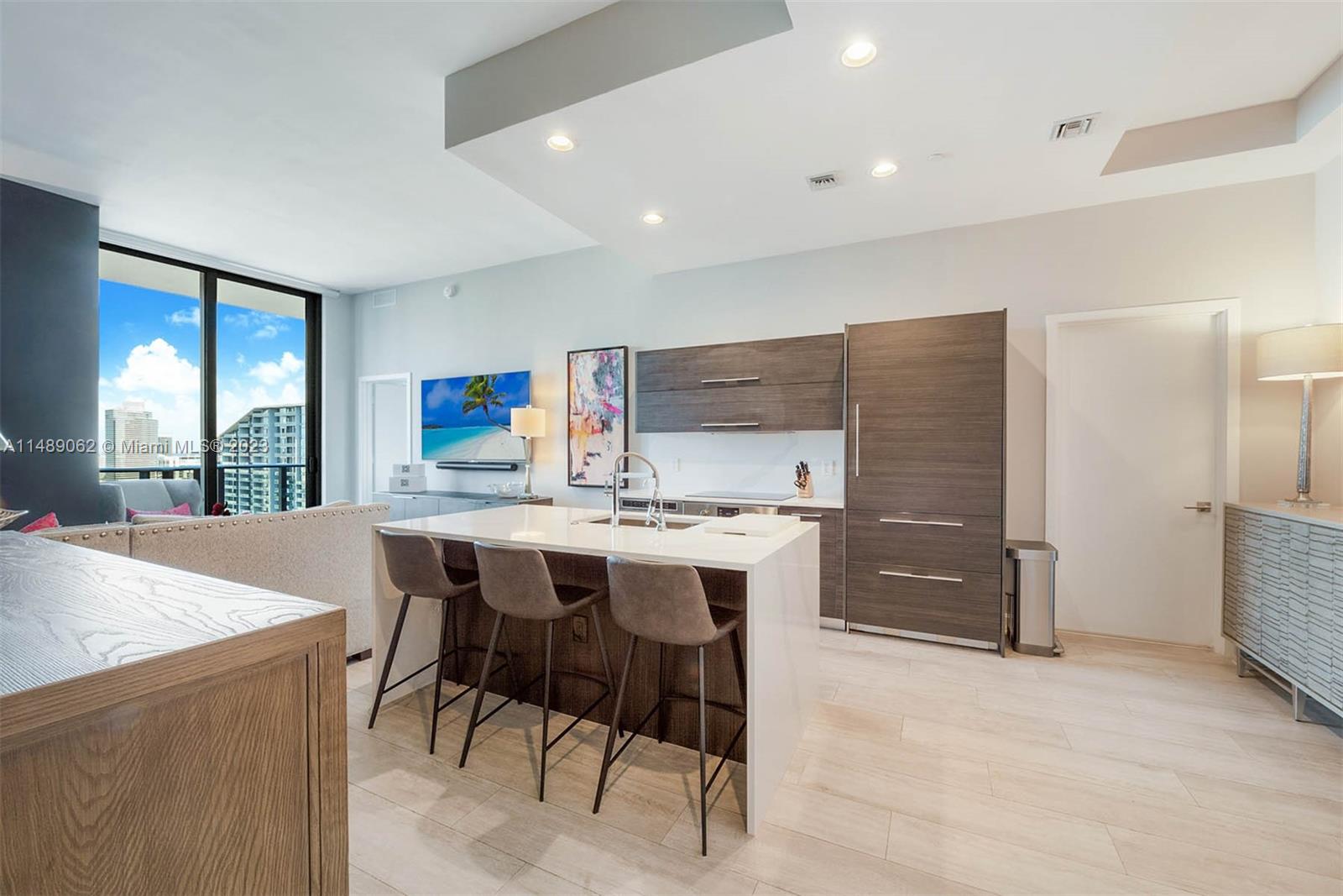 Experience the epitome of luxury living in this exquisite 3 bed/3.5 bath penthouse at Brickell Heights East Tower designed by Arquitectonica. With its soaring 12-foot ceilings and expansive layout spanning over 1,500 SF, this condo offers the perfect blend of elegance and comfort. Step onto the 50-foot-wide terrace and be captivated by the breathtaking views of the city lights and the iconic Brickell skyline. Each spacious bedroom is complete with en-suite bathrooms and custom closets. The attention to detail is throughout, with high-end finishes including Subzero and Bosch appliances, Italian cabinets, and luxurious rain shower and jacuzzi tubs. With resort-style amenities and a prime location in the heart of Brickell, you have everything you could ever desire right at your fingertips.