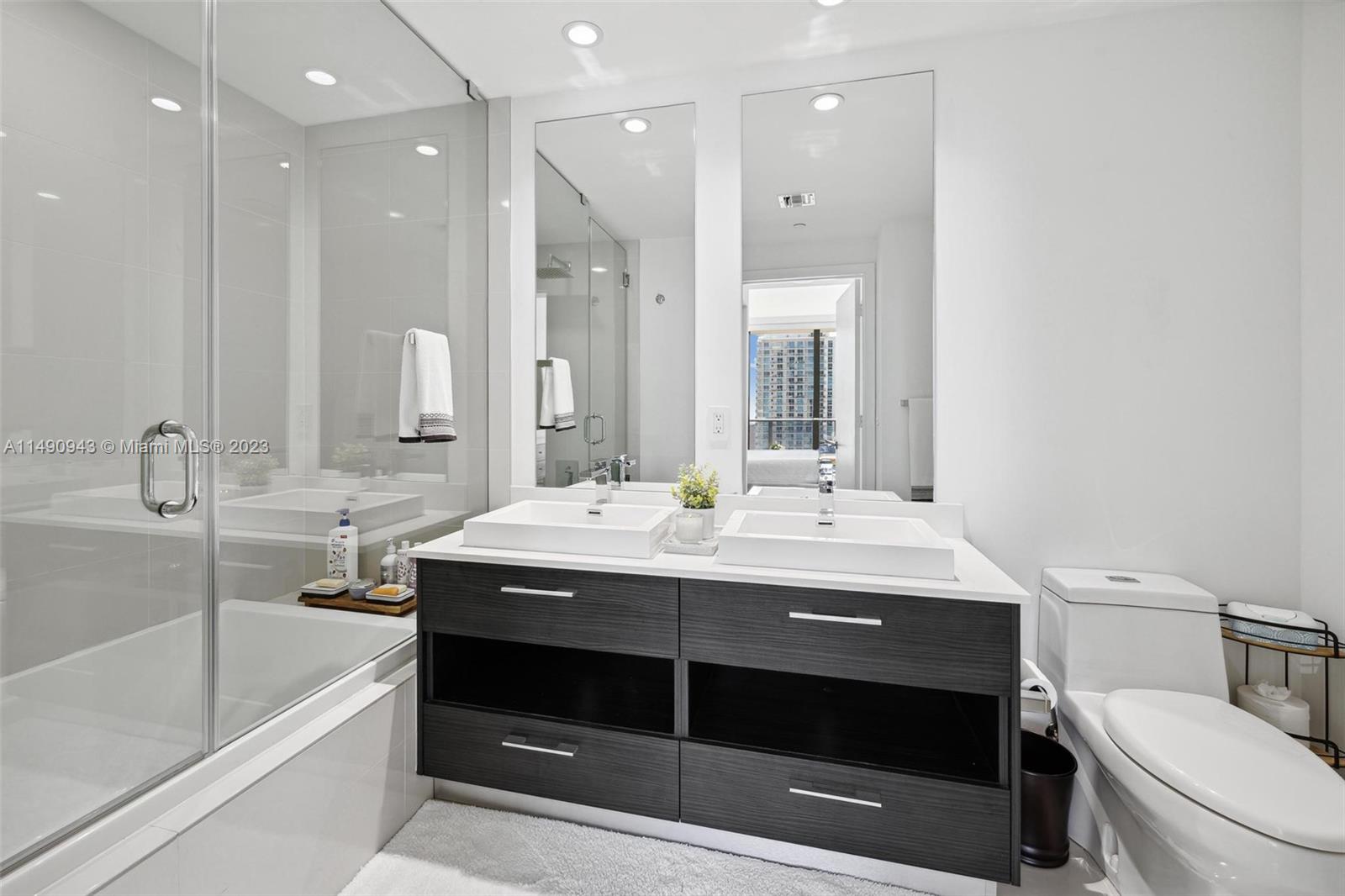 Exceptional smart floor plan! Bright, Open, Spacious 1 Bedroom + Den + 2 Full Baths w large open balcony and panoramic views of Miami Skyscrapers. Iconic building in the heart of Brickell, Miami's world class destination & financial center. Featuring high-end luxury finishes, open kitchen, washer and dryer. Amenities: Business Center, Roof Top Pool, 9th Floor Pool, Fitness Center, Men & Women Spa (sauna/steam), Treatment Room, Clubroom, Movie Theater, Kid's Playroom! Soul Cycle and Equinox on site! Steps from Brickell City Centre, Mary Brickell Village, Publix, & Restaurants! Garage: 1” refers to 1 valet parking provided by association. MOTIVATED SELLER.