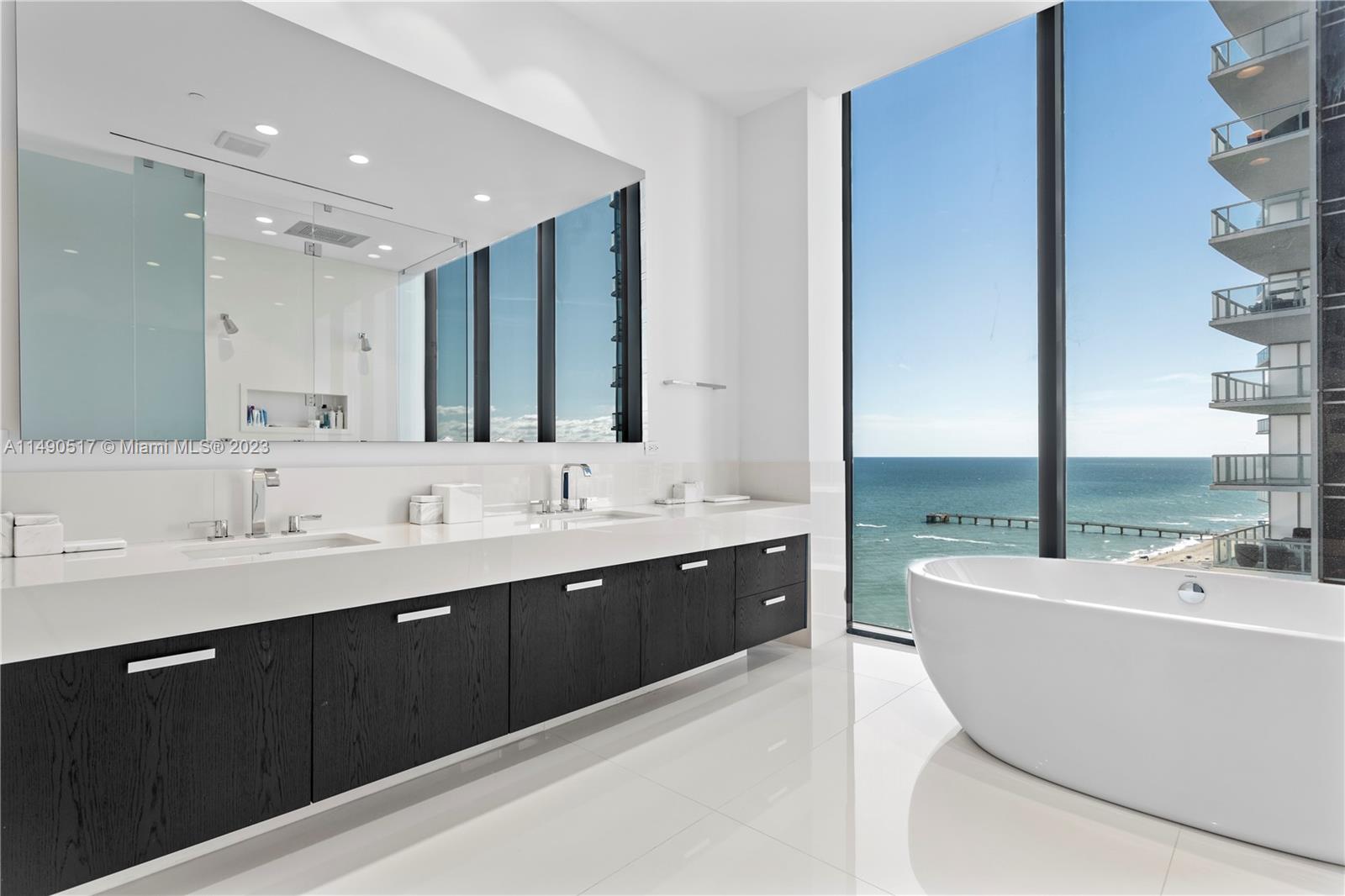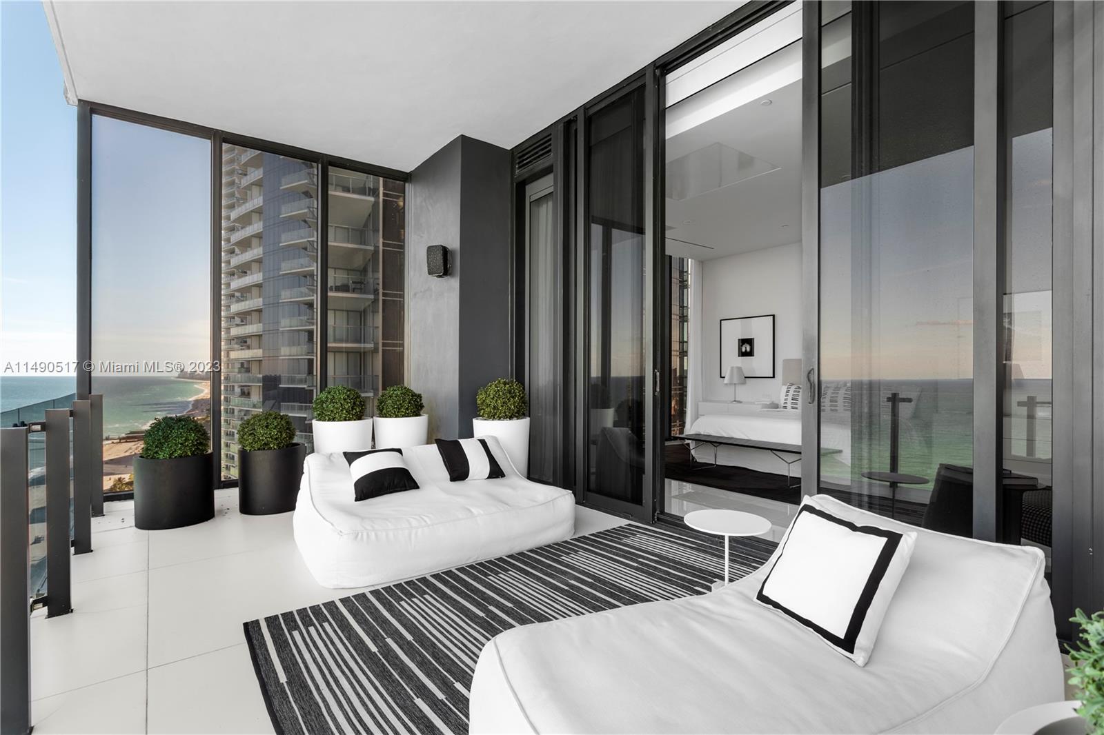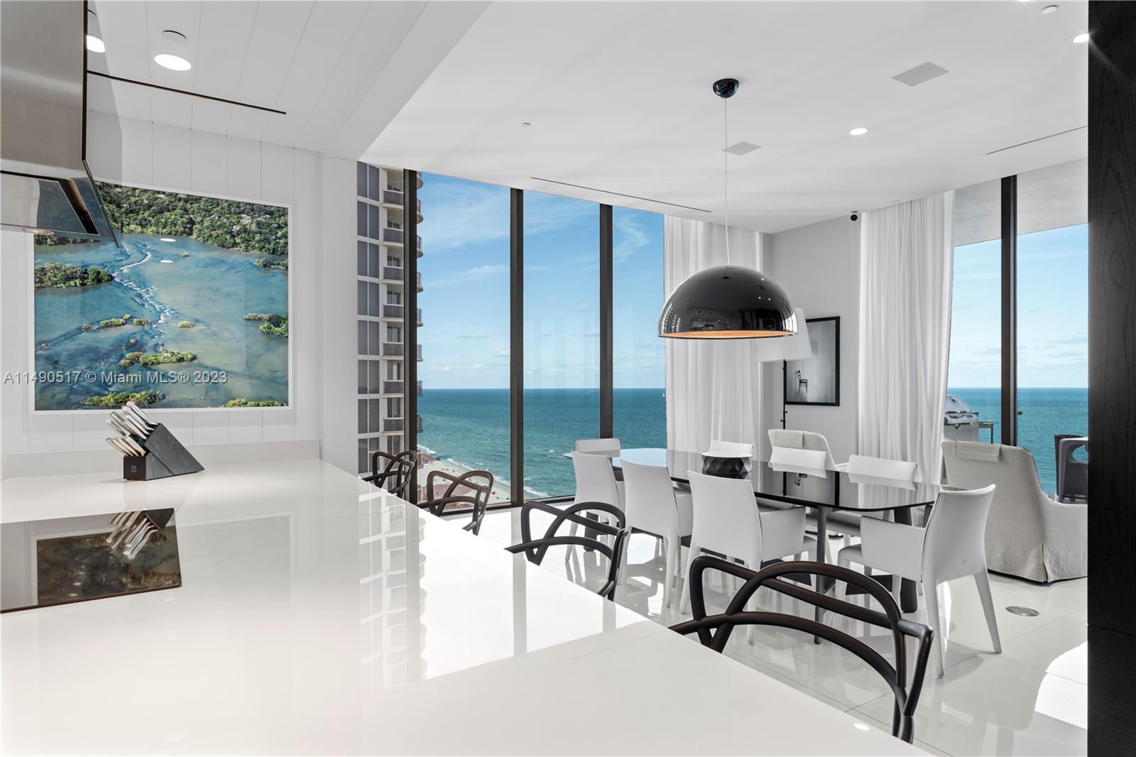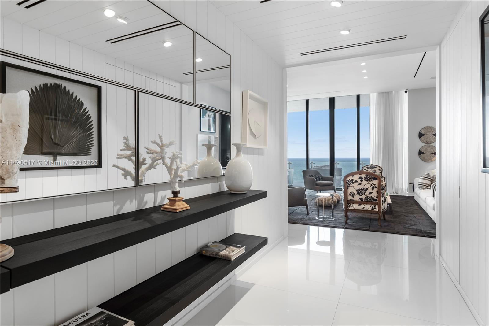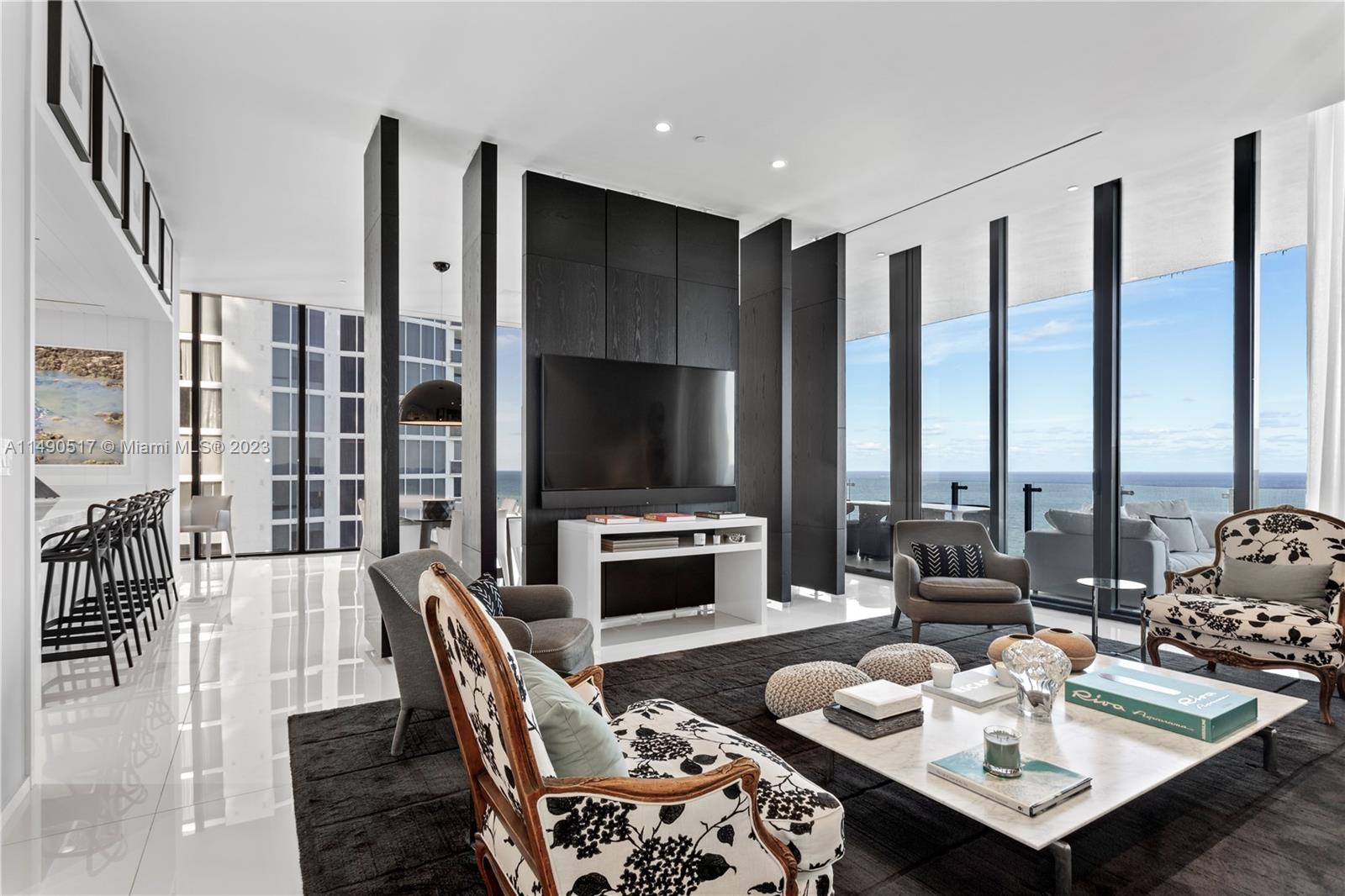 Welcome to Muse Residences, where luxury living meets oceanfront elegance at its finest! Nestled on the exclusive 15th floor, this exceptional residence offers a boutique lifestyle with a wealth of amenities. Step into this masterpiece featuring 3 spacious bedrooms, a versatile den, and 3.1 bathrooms, all adorned with 12-foot ceilings and floor-to-ceiling windows that grant you unparalleled vistas of the majestic ocean. State-of-the-art technology connects automated shades to audio system and cameras. Designed by the renowned William Simonato, this direct oceanfront residence is truly one of a kind. Fully equipped summer kitchen, complete with TV and speakers. Amenities include 3 valet parking spaces, community room, exercise room, cabanas, pool, sauna and children’s play area.