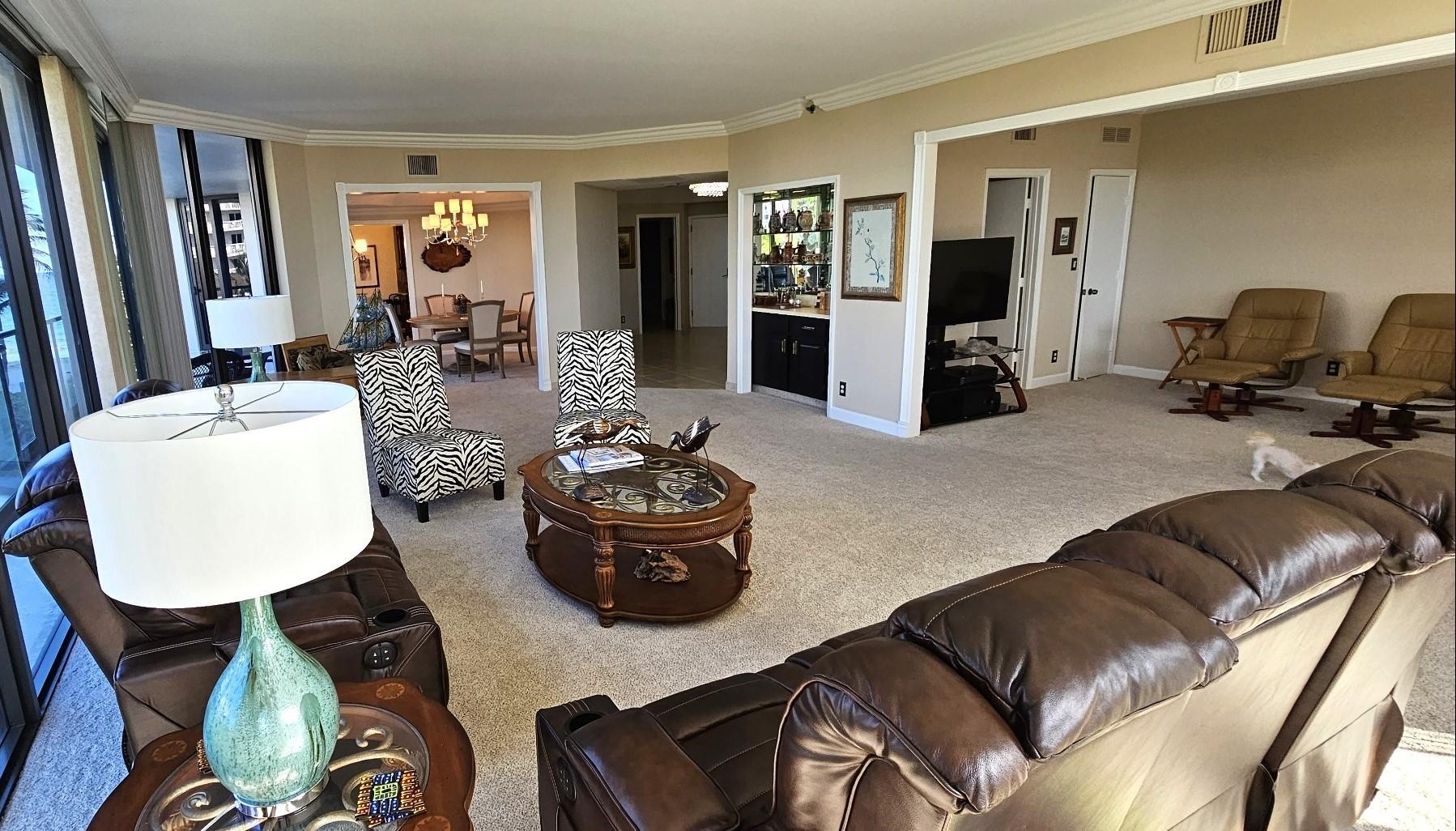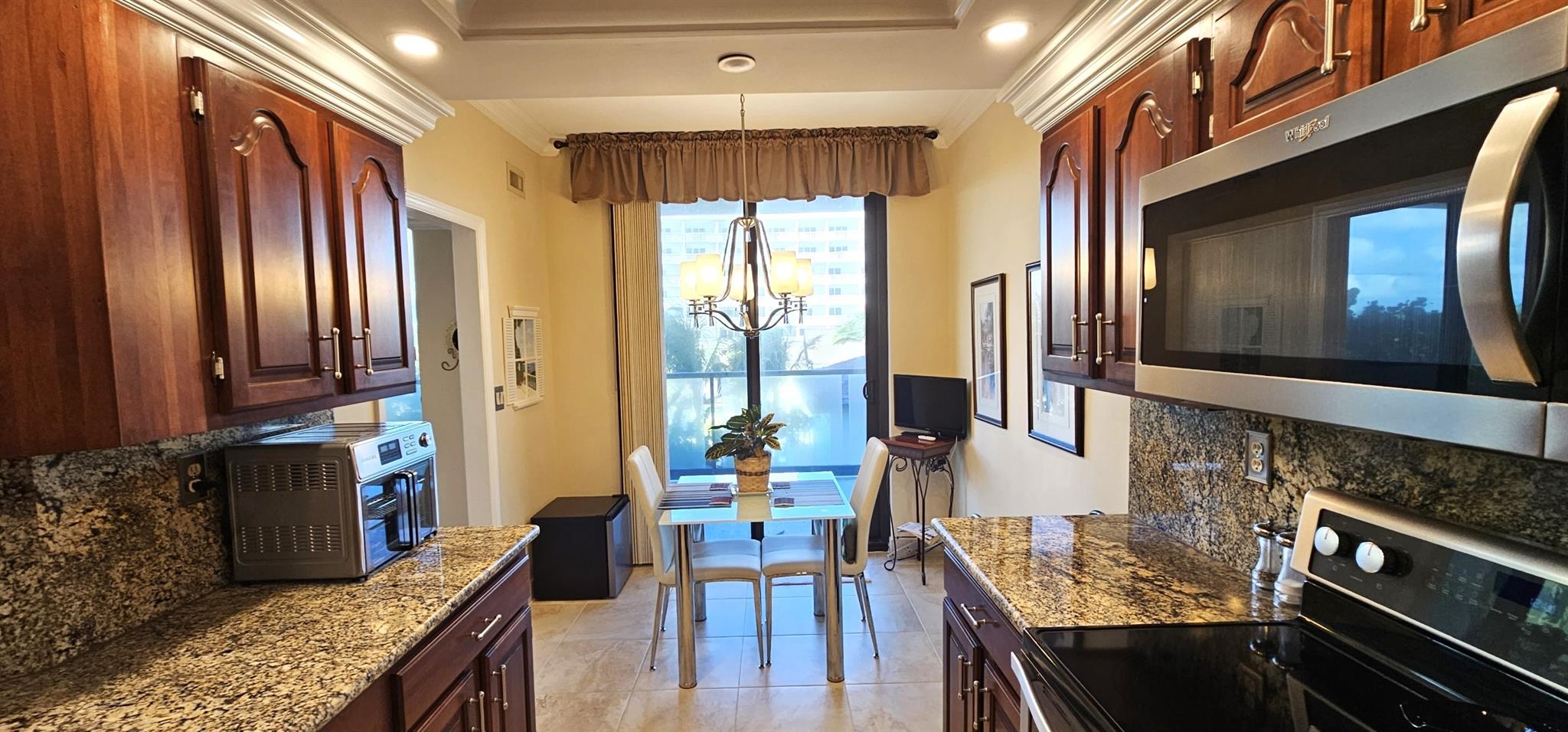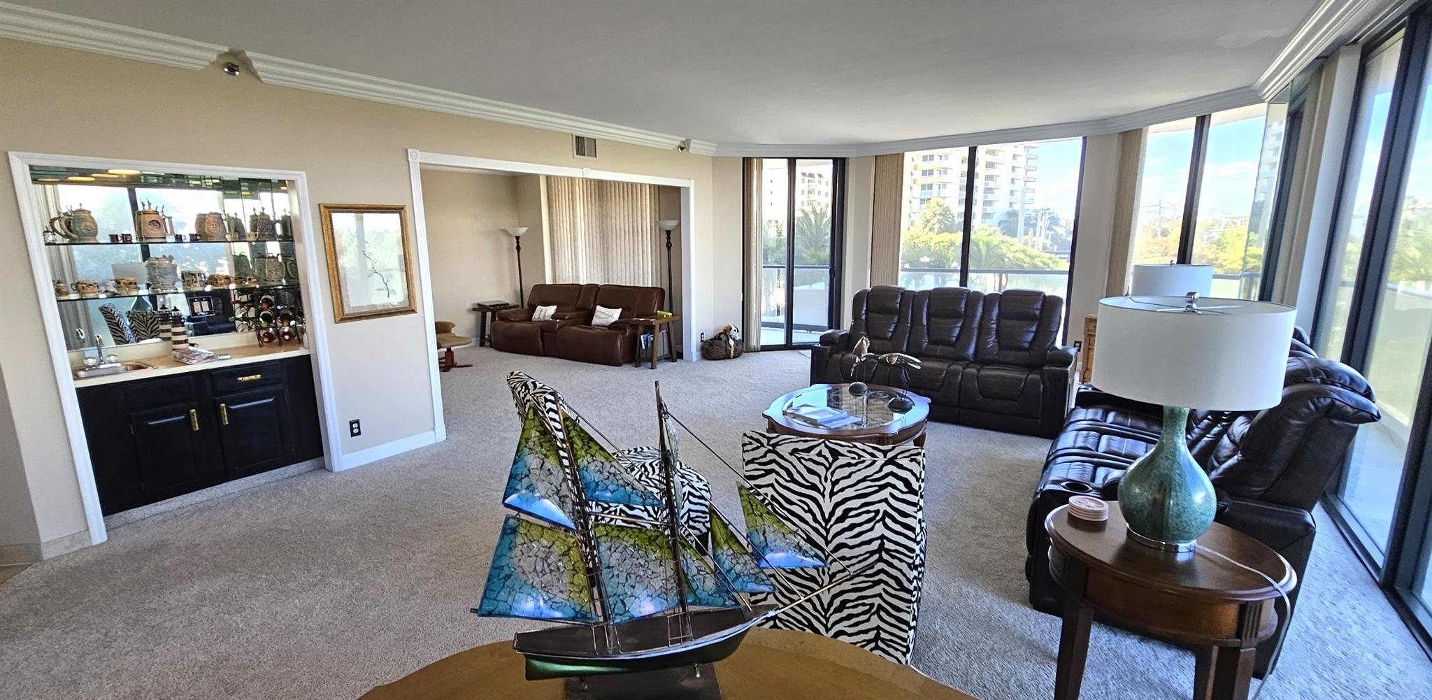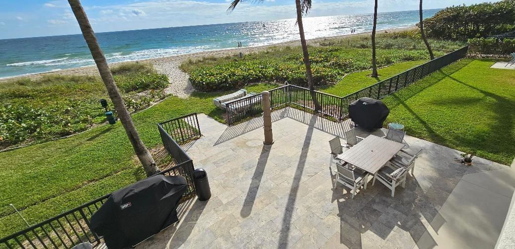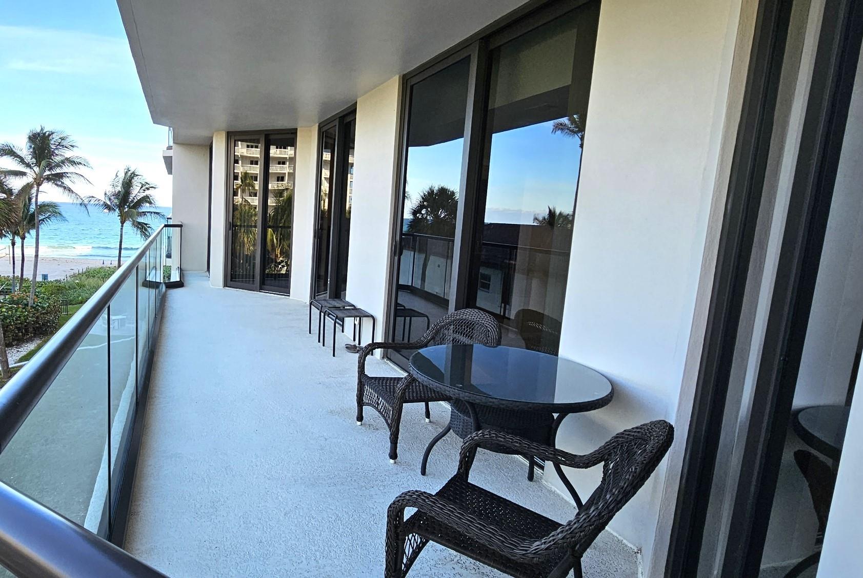 Welcome to the ultimate beachfront paradise! This stunning corner unit offers ocean & pool views & is priced to sell. Approx. 3200 SF includes a wraparound balcony with 2 patios for relaxing or entertaining. Apt. has impact windows, 9-ft. ceilings, crown moldings, spacious closets & full laundry room with deep sink. Kitchen has granite counters & stainless steel appliances. Only 46 units with many amenities, garage parking & nice wide beach. Total concrete & balcony restoration completed which includes glass railings & bldg painting. Also just completed pool & spa renovation, new pool/driveway pavers, beach area patios & outdoor furniture & tropical landscaping. The 40-yearcertification is done. Small pets welcome. Convenient to many shopping venues, fine dining, golf, airport & more!