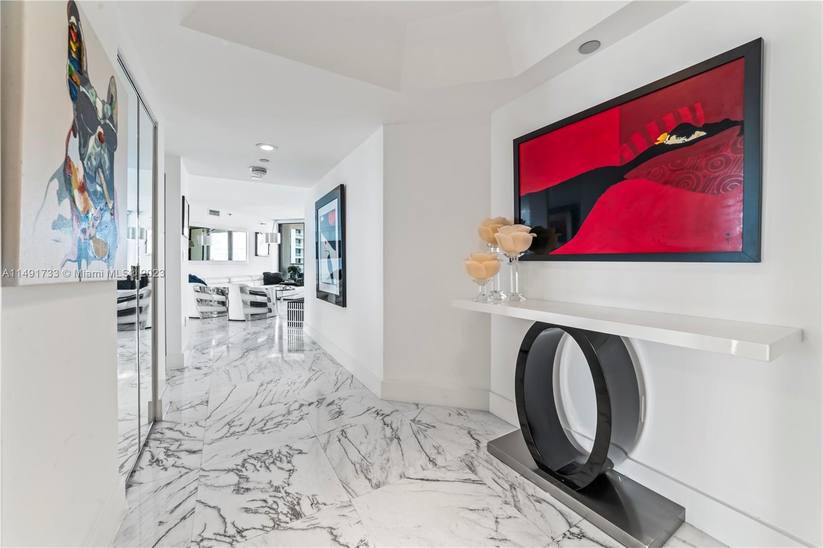 Stunning turnkey residence featuring three bedrooms and three bathrooms, professionally designed and remodeled to the utmost standards. Enjoy captivating views of the Intracoastal, Ocean, and City from the two balconies. The interior boasts white exotic Greek marble, with kitchen, bath, and closet cabinetry crafted by Nolte Kitchens. Revel in the luxury of Miele and Subzero appliances, while the bathrooms showcase marble showers and frameless glass enclosures with rain shower heads. All the windows have been replaced with hurricane-impact windows. The club amenities include 15 tennis courts, 4 pickleball courts, multiple pools, 3 restaurants, Club and spa, a fitness center, marina, jogging path, dog park, and 24-hour concierge and valet service.