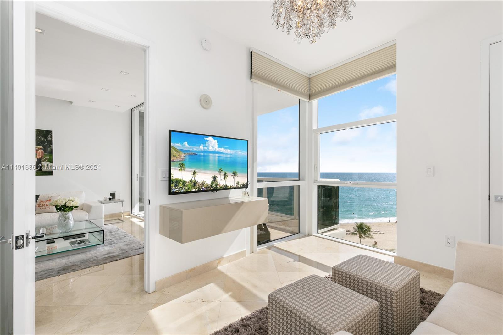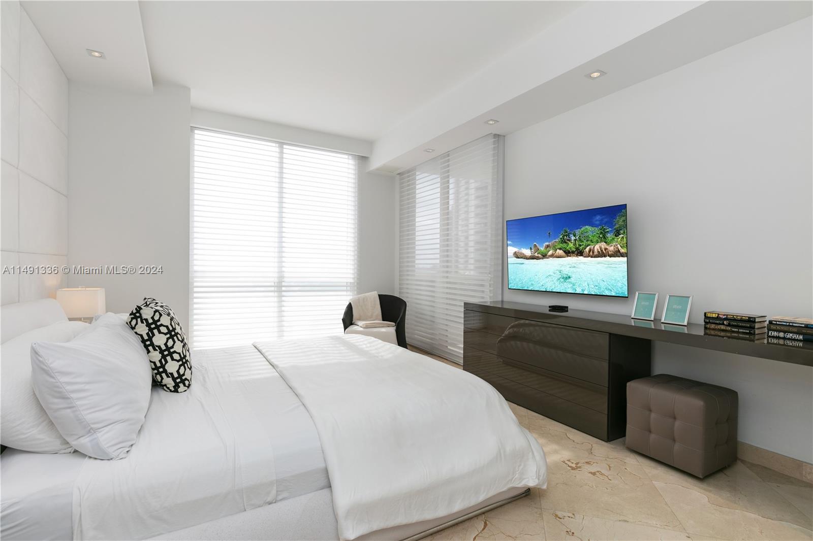 Spectacular views from this plush residence, offered turnkey with luxurious Italian furnishings. Finely appointed with marble floors throughout, contemporary kitchen outfitted with genuine marble counters and appliances by Sub Zero, Miele and Gaggenau. First class building amenities with 3 pools, tennis courts, state-of-the-art spa and fitness, four on-site restaurants, salon, dog park, kids play areas, and more! Ideal location directly across the street from endless dining options, cafes, and shops. Enjoy resort-style living in the privacy of your own home!