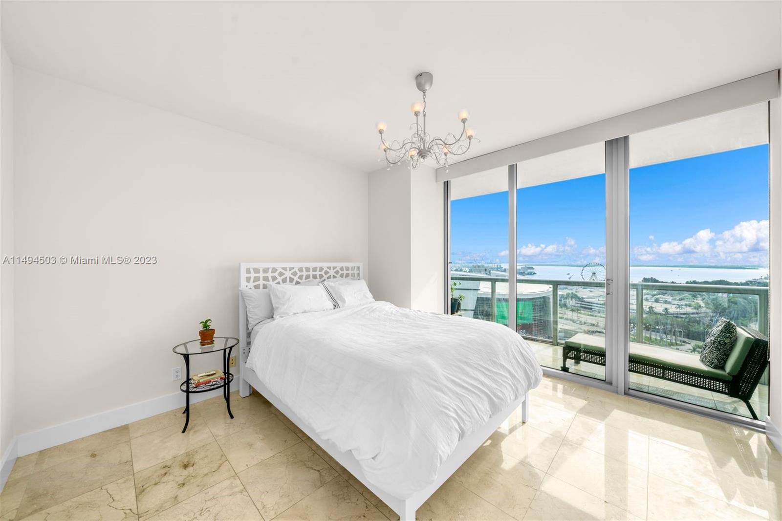 A lovely 2 Bed/Bath condo at Marina Blue w/ 1,208 interior square feet, marble flooring throughout, stainless steel kitchen appliances, washer/dryer, custom built-in closets, motorized shades, a spacious balcony with access from the master bedroom and living room, and 9-foot-high floor-to-ceiling glass windows with direct views of Biscayne Bay and the Downtown Miami skyline. Includes one assigned parking space and storage cage. Building amenities include: two swimming pool, hot tub, fitness center, BBQ, business center with conference room, sand volleyball court, party room, 24-hour valet parking, and 24-hour concierge. Located within walking distance of the Adrienne Arsht Center for the Performing Arts, Bayside Marketplace, Kaseya Center, Museum Park, and Miami Worldcenter.