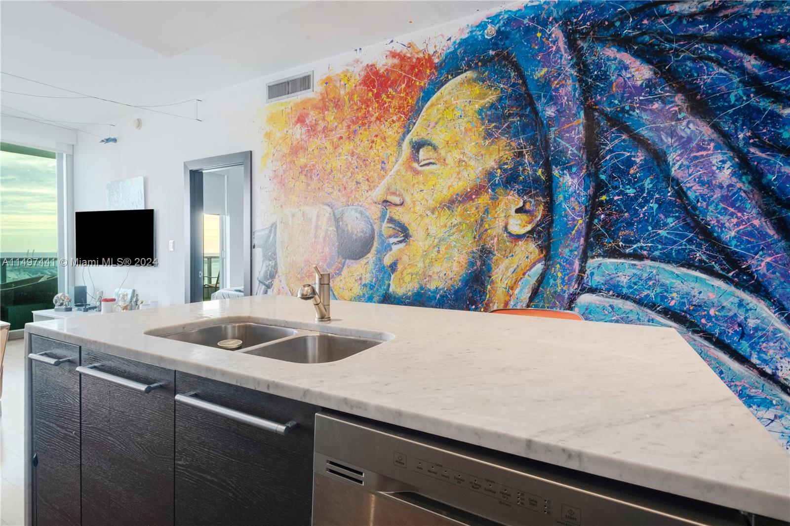900 Biscayne Bay is a 63-story condo building in Downtown. It includes 516 units + retail/office spaces. Walking distance to Kaseya Center, Frost and Perez Art Museum, Adrienne Arsht Center, Bayside and Miami Worldcenter shops. Near Maurice A. Ferre Park, it's ideal for leisure and dolphin watching. A must-see unit owned by an art enthusiast, offers 1 Bed + den with a Murphy bed, two bathrooms, and a spacious balcony with panoramic views. Kitchen includes Miele appliances, marble countertops and wine rack. FURNITURE included. Amenities- two pools, hot tub, gyms, spa, saunas, steam rooms, movie theater, BBQ area, clubroom with piano, concierge, valet parking, kids' playroom, restaurants, a nail salon, an eye doctor, and a nutrition store.