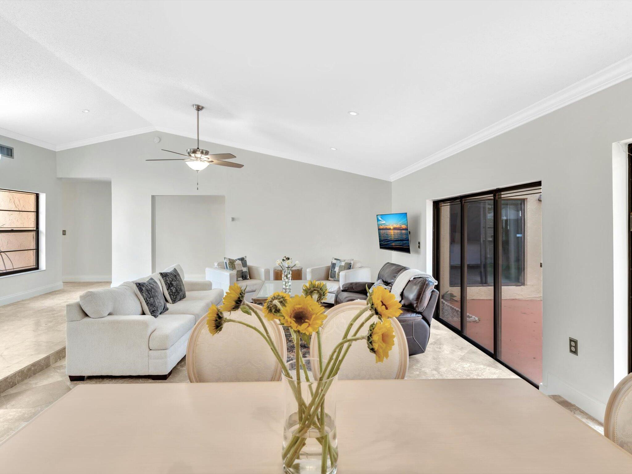 Fantastic 3 bdr/2 ba villa in the heart of Boca Del Mar. Very light & bright home with a beautiful kitchen that has wood cabinets, granite counters, SS appliances & breakfast nook. Travertine floors through most of the living areas. Bathrooms are updated nicely, walk in closet in main bdr & sliders to enjoy the view. Freshly painted in main living area. Great patio overlooking the large backyard for your afternoon sunsets. One car garage with long driveway for additional cars. The Colony is a small quaint community with pool, basketball court, tennis courts, lake & clubhouse. A short distance to all the shops & restaurants on 18th St! Bike or walk all the paths in this fantastic area. Steps to Worship. Close to 95 & the beaches! Fantastic schools! Live the Boca life in the best location!