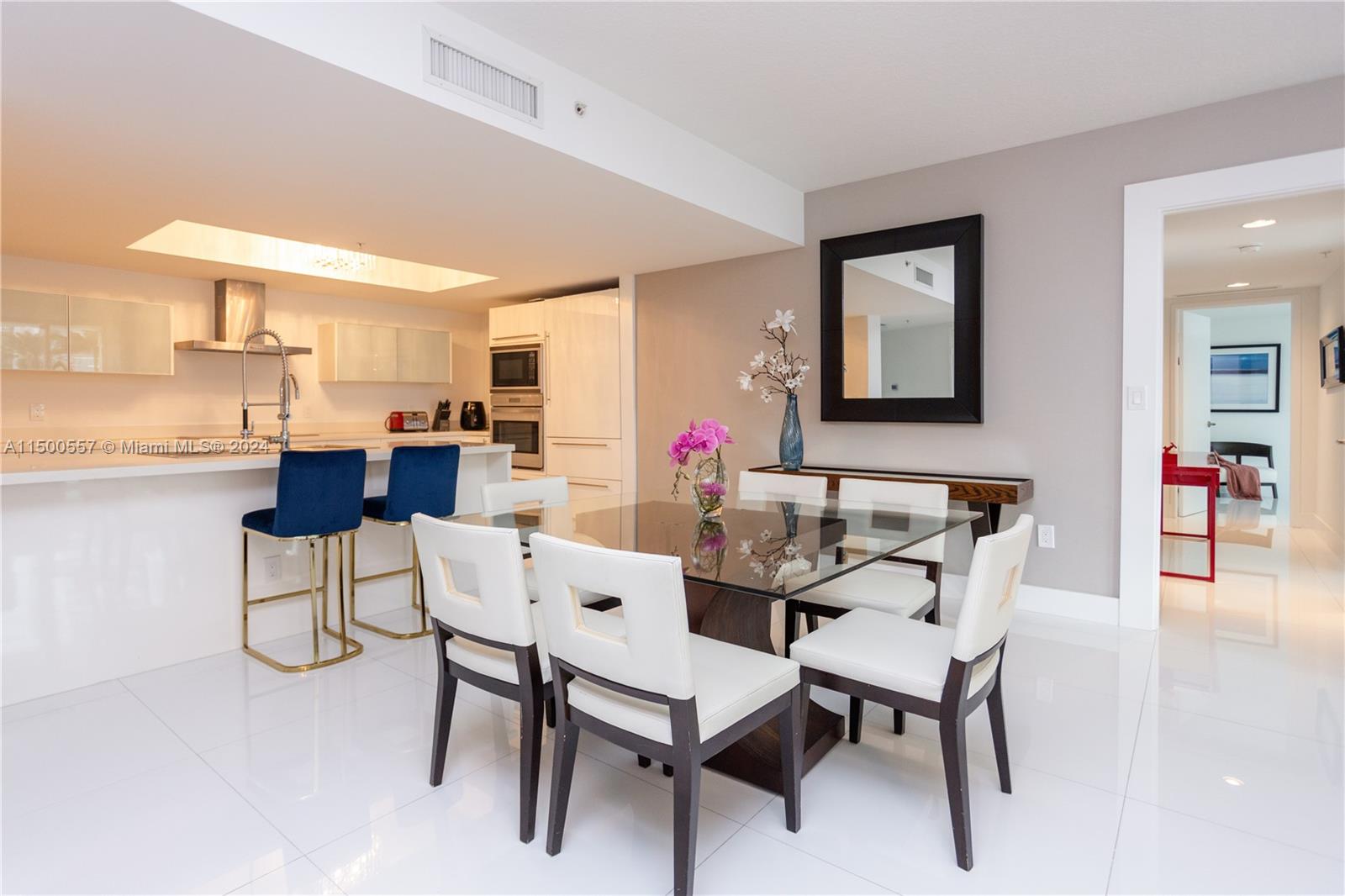 WATERVIEW 3BD/3.5BA CONDO. UNIQUE LAYOUT and SPACIOUS CONDO! One of the largest units in the Building (1785 sq ft). Elegantly furnished, white tile flooring and white kitchen. 2 MASTER BEDROOMS! Parking: Assigned spot on the same floor (don't need to use elevator), +1 free valet. Quiet Ambiance: Sole unit in wing, no street noise. Balcony: Exceptionally private balcony with a stunning bay view. Rain-friendly ceiling ledge. Amenities: Heated pool, gym, sauna, jacuzzi, conference room. Location: 3-min walk to the beach, Beach Club service available. Special Advantages: - Spacious main master bedroom. - Hurricane-proof windows. - Spacious closets in every room. - Large, modern white kitchen. - Freshly painted interior. - Brand new washer and dryer.