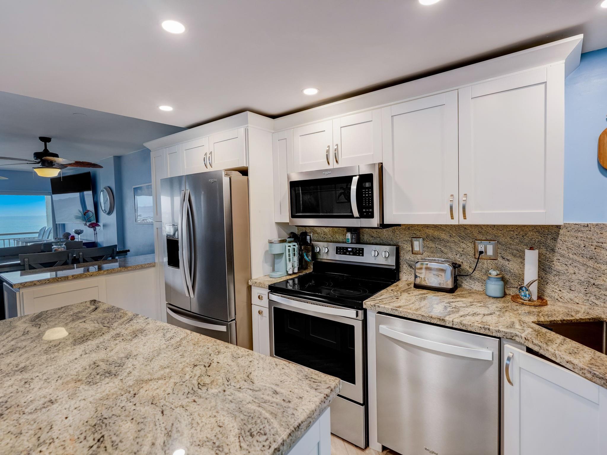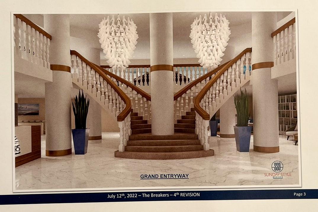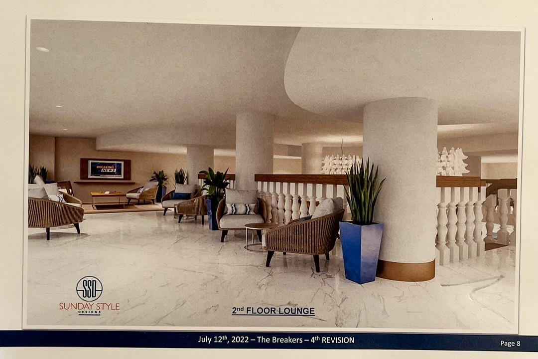 Enjoy unobstructed direct ocean views from this completely renovated 2 bed, 2 bath unit in The Breakers. This turn-key condo comes fully furnished including large flat screen TVs, deluxe patio furniture and newer stainless steel appliances. You'll love the open gourmet kitchen and separate dining area, both with ocean views. The large balcony overlooks a resort style pool and private beach area with tiki huts, BBQ grills, hammocks, fire pit, volleyball, bocce ball court and garden area. Impact glass windows. Walk to the Pompano Beach Pier, shopping, restaurants and bars. The lobby and mezzanine level are currently under construction, see renderings.