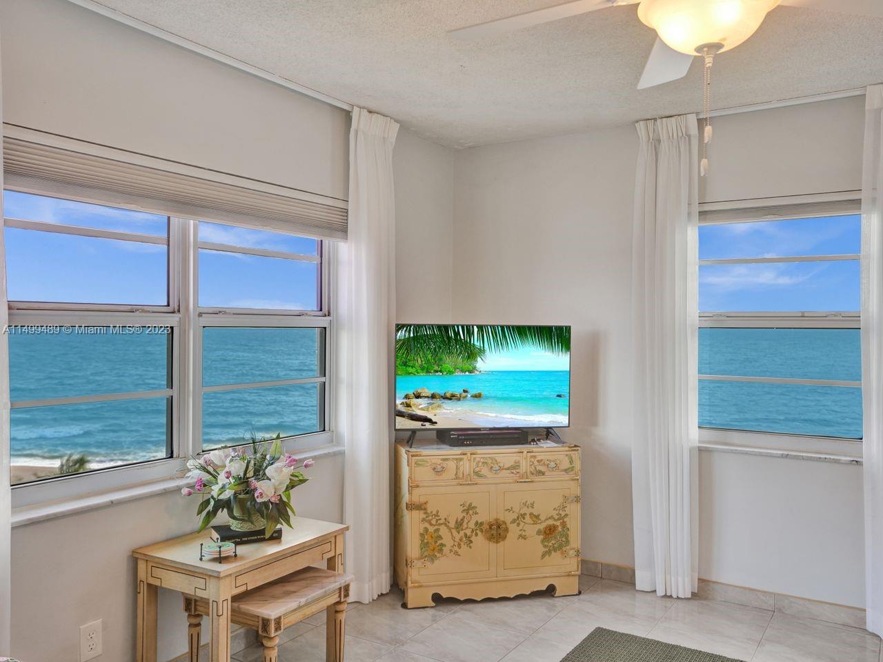 Wake up to the sounds and views of the Atlantic Ocean from your bed! Nicely Furnished (turnkey) with upgrades and Direct Ocean views from both bedrooms, living room and balcony! 2nd Room is convertible with doors that open to be used as a DEN that has Brand NEW Murphy bed. Tiled floors thru-out, Total SF 1174. Impact Windows & Door. ALL AGES! Located between Emerging Pompano Beach Pier & Lauderdale By-the-sea: Both are close to places of worship and a 10 min. stroll to Sea ranch lakes Publix shopping center Fischer Family Pier, dining, live entertainment, great beaches & more. Key FOB for building access. Rentals allowed after 1st year w/ a 3 mo. min. & twice per year max. Assigned 1 COVERED parking space and guest parking. Association has quick approvals. Show with Appt.