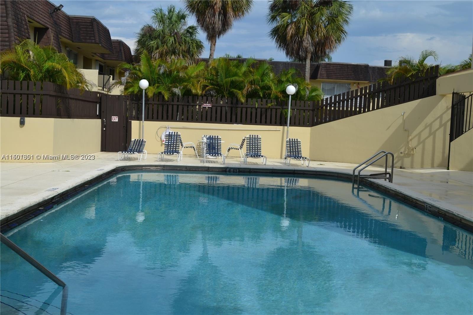 Very well kept & spacious 2/2 first floor unit in a great location right behind " The Falls Shopping Center". Fully tiled, lots of closet space and also has a fenced in patio. Includes 1 assigned space and plenty of guest parking. Separate parking lot for a Commercial vehicle/Boat is also available upon request and availability, must verify with the association. Amenities include pool, water, Insurance, coin laundry, and Hall room rental for parties in the club house. Advance notice required for showings.