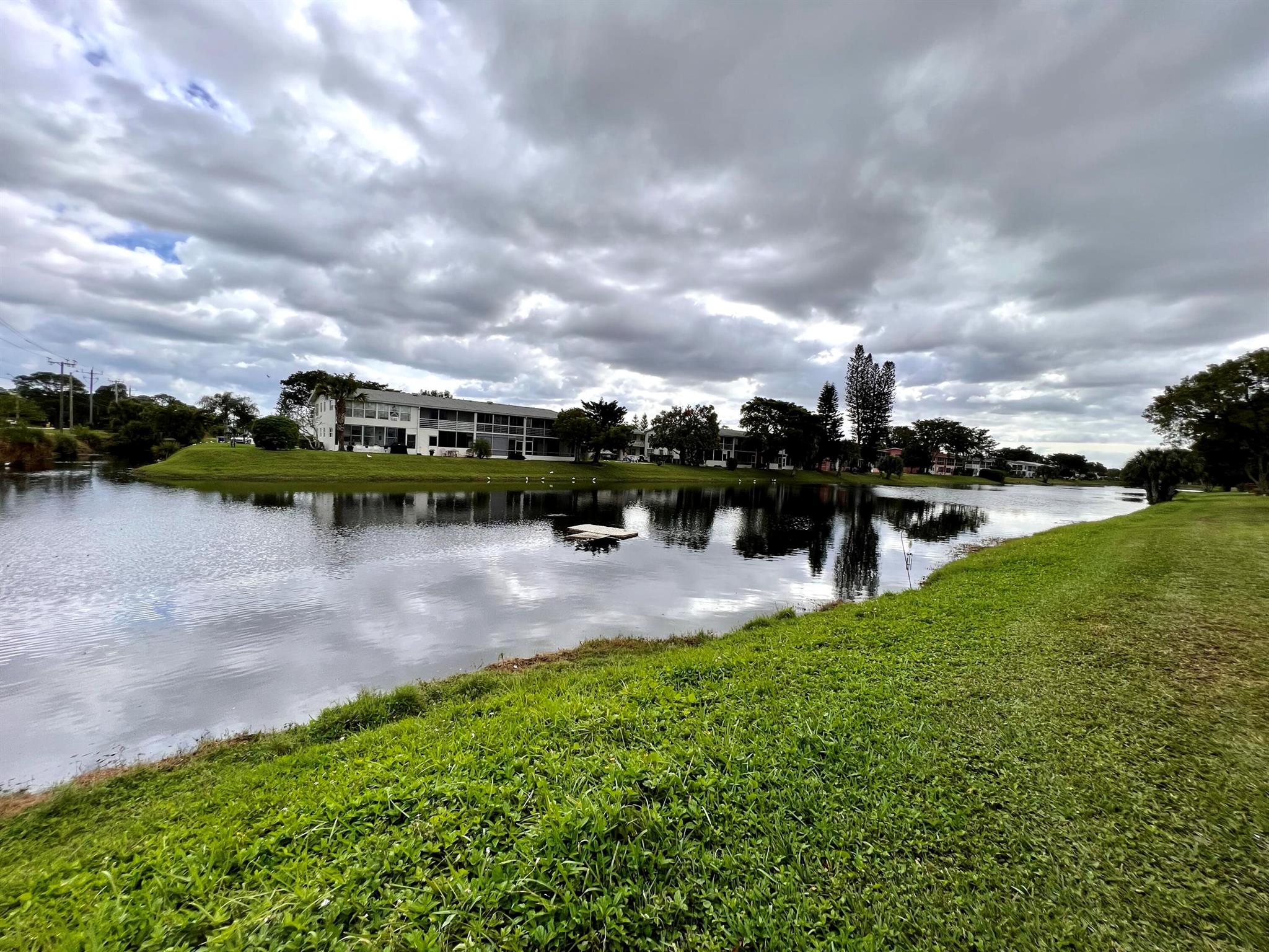 WOW - WATER VIEWS & AMAZING LOCATION IN 55+ CENTURY VILLAGE! Cozy, Private, and Tranquil 2/1.5 First Floor Corner with Water Views from Side & Back. Close to Hastings Fitness Center Via the Footbridge Located Just Steps from Front Door. Updates to Baths. Neutral Tile Flooring in Living Area - Gleaming Wood Look Flooring in Primary Bedroom. Sold AS IS. Building Features A New Roof in 2020. Lovely Tucked Away Peaceful Location Yet Convenient to the Dorchester Pool & Hastings Fitness Center. Century Village resort style 55+ community with so much to offer...