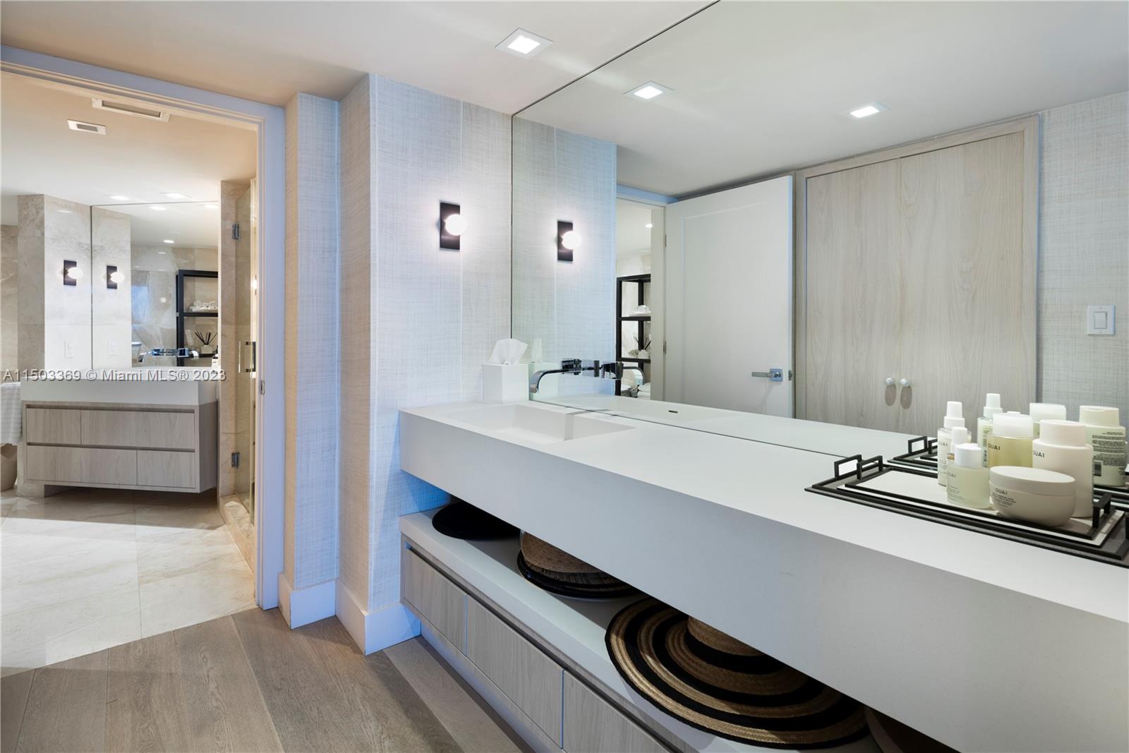 Designer unit on Millionaire’s Row which underwent a Gut renovation completed in 2018 by Light On White Design Studio, featured in Architectural Digest, Elle Decor, Vogue Living and Luxe Interiors. Spanning just under 2000 sq ft, all bedrooms have Ocean views. A New kitchen featuring Gaggenau appliances and Dornbracht plumbing fixtures and marble throughout all bathrooms. Engineered wood flooring throughout and impact windows and doors. Amenities include 2 pools , jacuzzi, sauna, new gym, play room and BBQ area. The property has direct beach access.