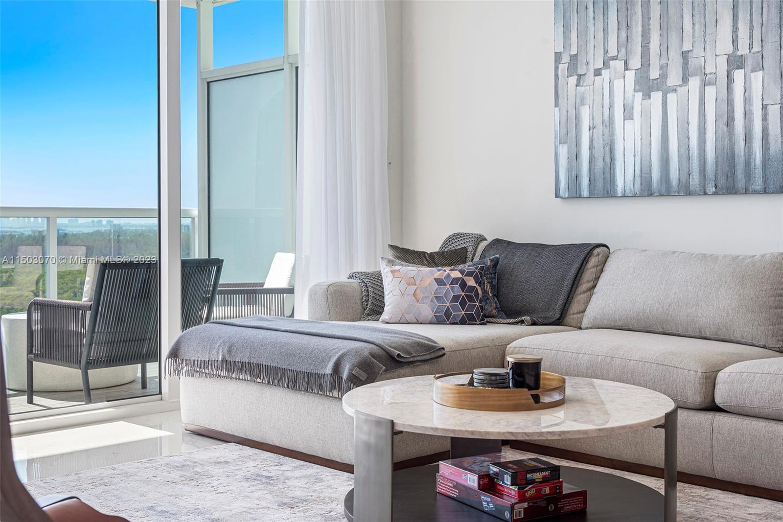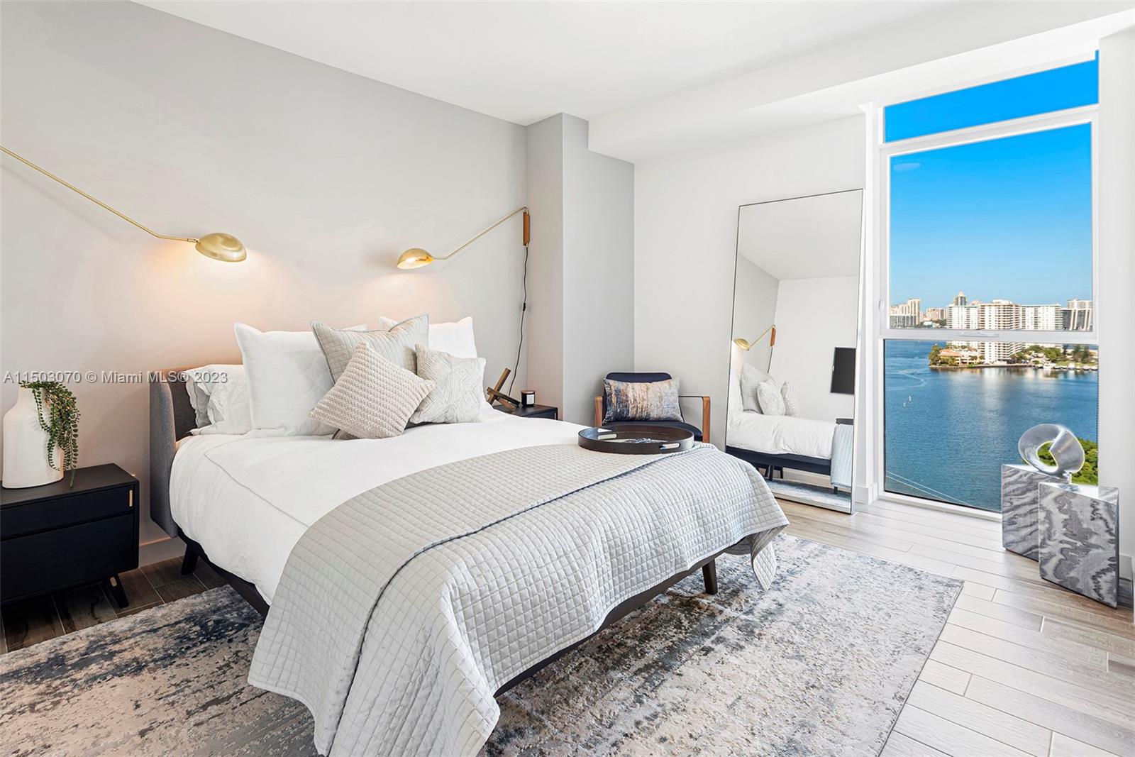 Discover the allure of 1904, the highest non-penthouse residence at 400 Sunny Isles. This 3-bed, 2.5-bath condo presents sweeping views of the ocean, Intercoastal waterway, and downtown skyline. Standout features include floor-to-ceiling windows, spacious kitchen with island, top-of-the-line appliances, and a generous primary suite/bath. 5-star amenities include two assigned parking spots, valet, marina, gym, spa, tennis court, bayfront pool, plunge pools, outdoor jacuzzi, and round-the-clock concierge service.