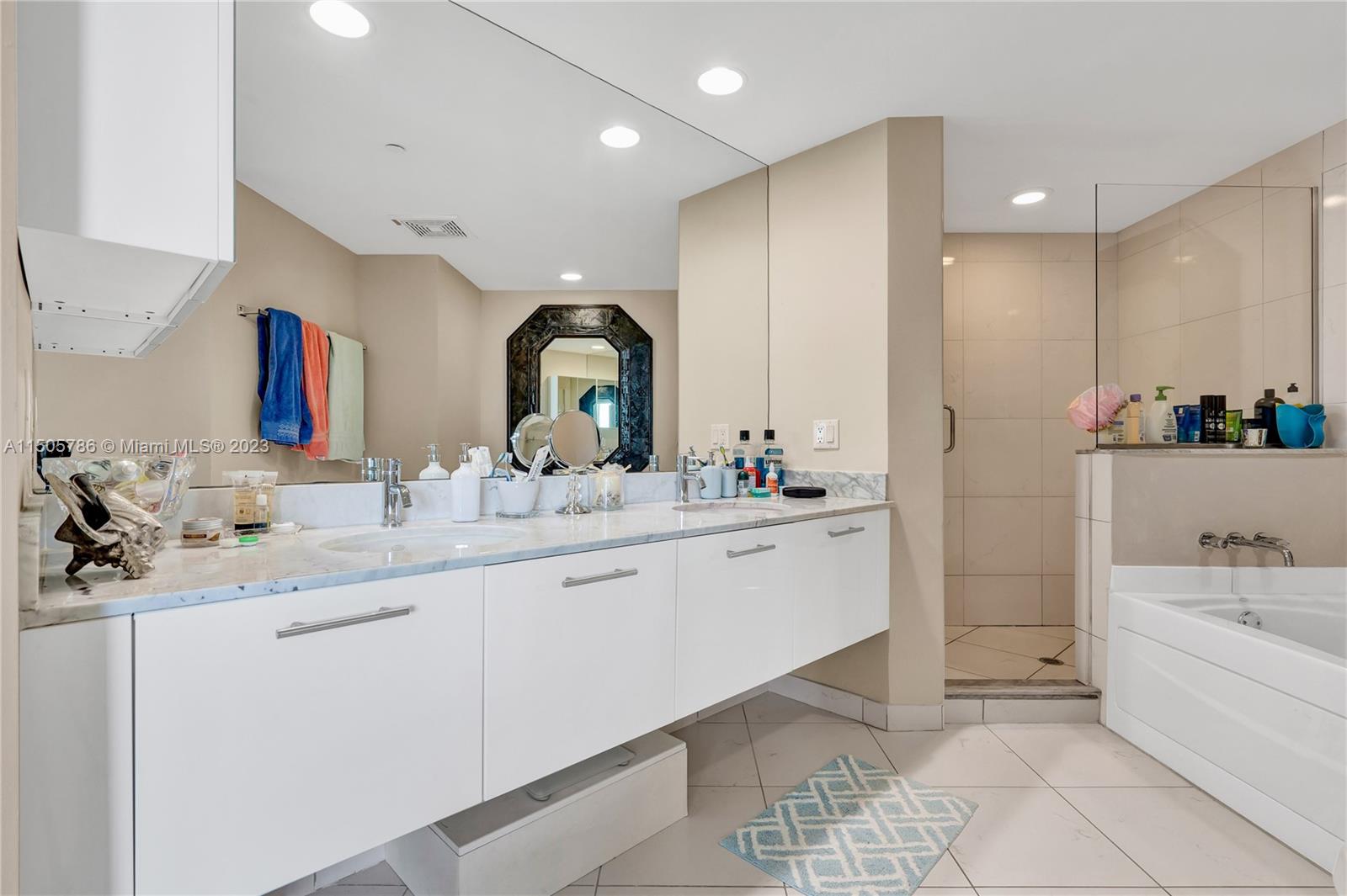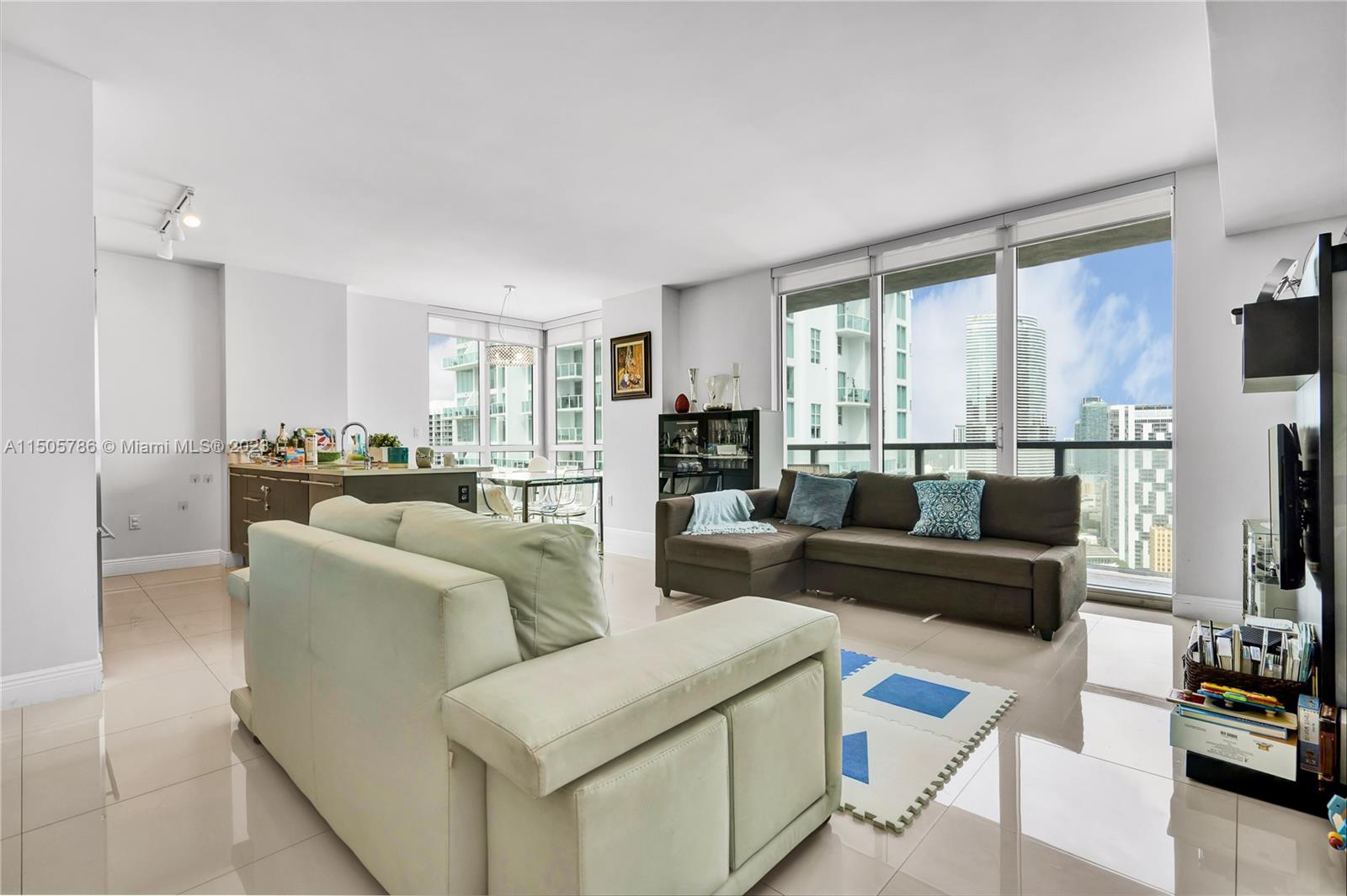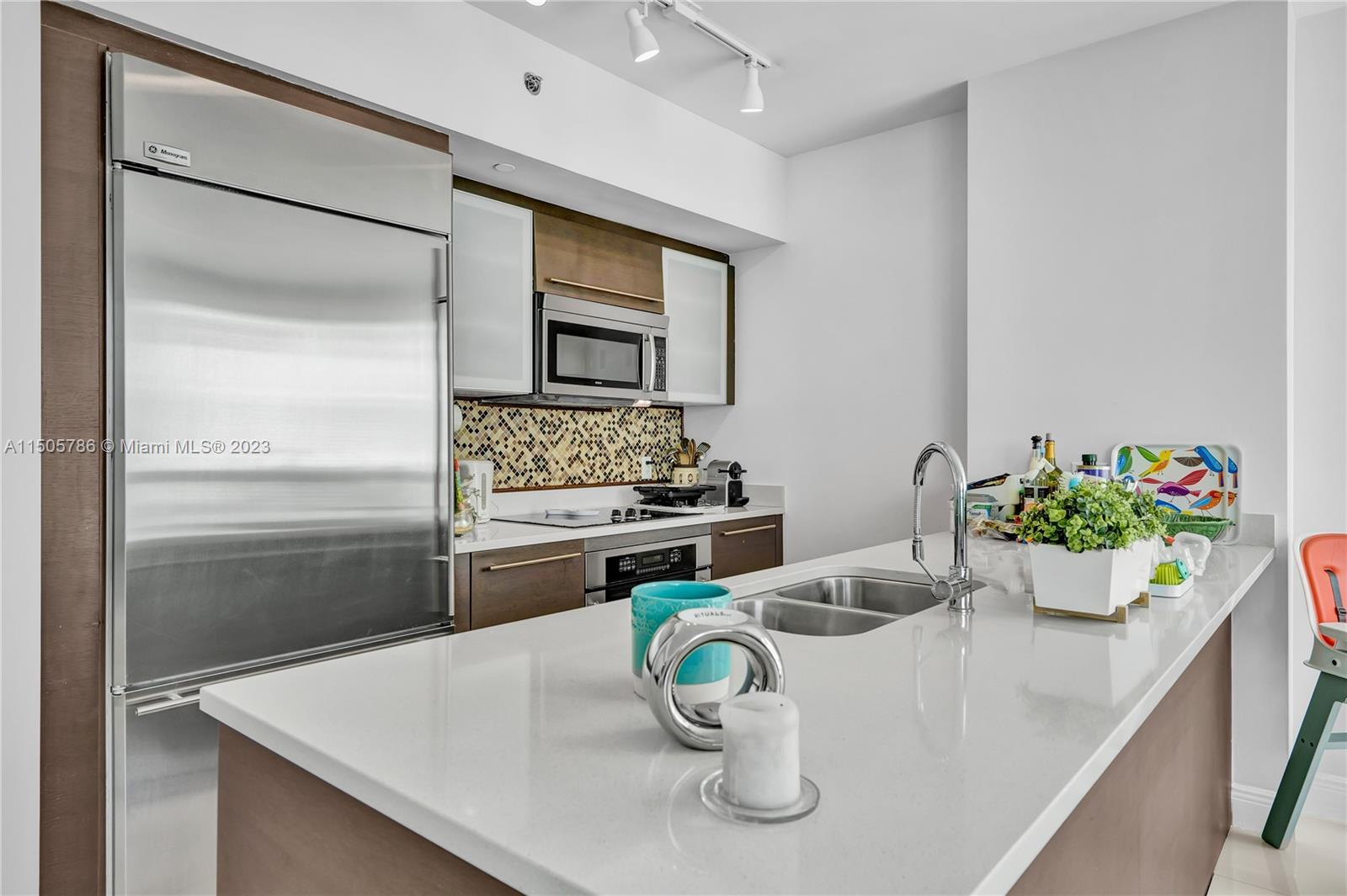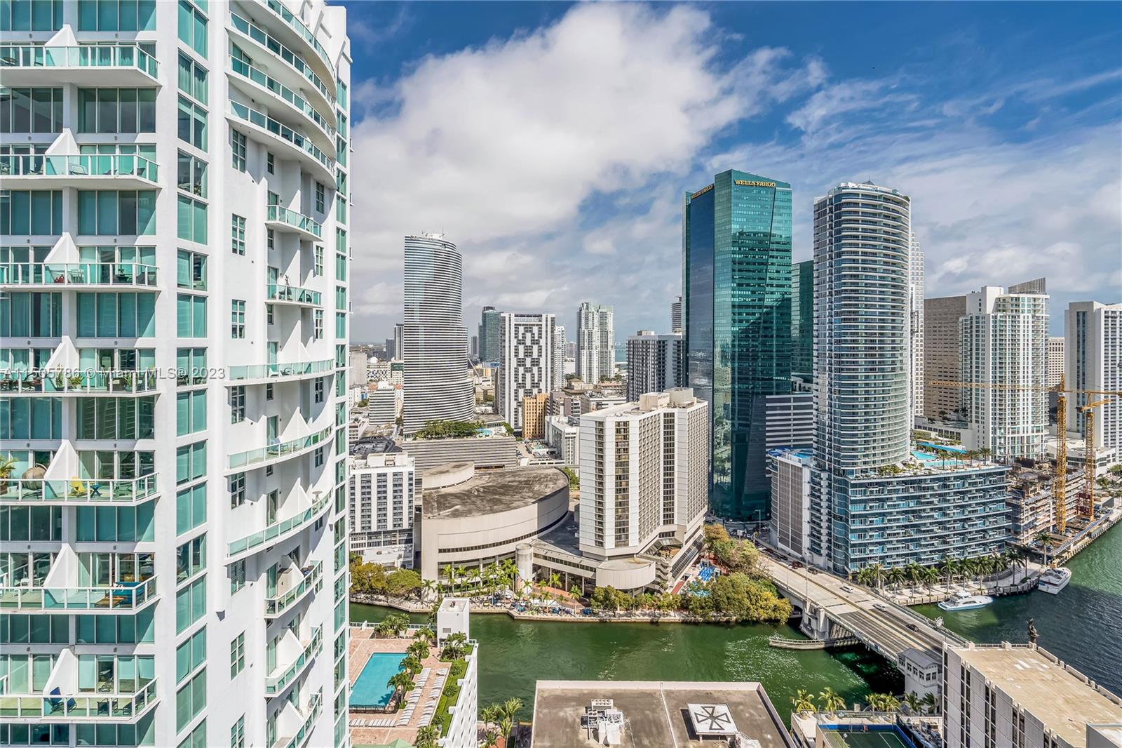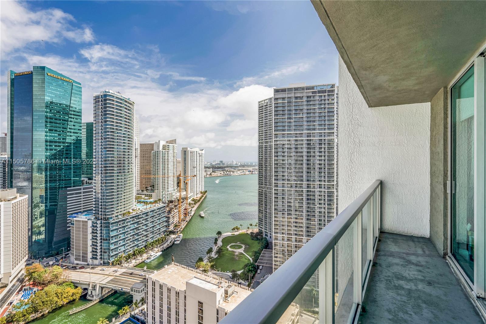Excellent location in Brickell. Corner unit with river and bay views in the sought-after 500 Brickell West tower. Best split floor plan, 2 MASTER BEDROOMS with en-suite bathrooms, double height ceilings, porcelain flooring throughout, large kitchen with quartz countertops & stainless steel appliances, roller shades on all windows, jacuzzi tub & separate glass-enclosed shower, walk-in closets. Includes 1 assigned parking space. Building amenities include 42nd-floor rooftop pool & sundeck, 11th-floor infinity pool & poolside cabanas, sauna & steam room, hot tub, club rooms, concierge, 24-hr valet, fitness center & more. Across the street from Brickell City Center, just a few blocks away from Downtown and next to a Metro Mover station. SHORT-TERM RENTALS ALLOWED 30 DAYS MIN, 12 TIMES PER YEAR