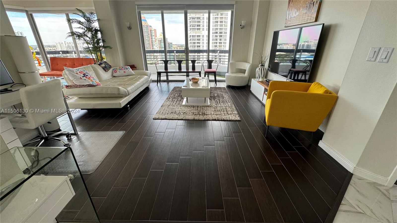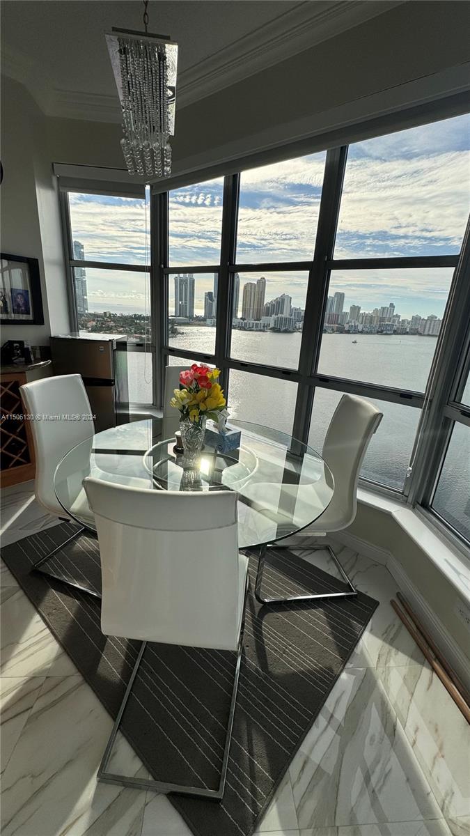 The ULTIMATE Penthouse! Rare opportunity to own the best unit in the area! UNIQUE VIEWS of the intracoastal and the ocean across Sunny Isles and all South Miami! 2 spacious bedrooms, 2 full bathrooms with shower and tub recently renovated. Exquisite marble floors throughout the unit and wrap around balcony! Tasteful tile floor on the living room and master bedroom! Brand new stainless steel appliances with washer and dryer. Comes with 3 assigned parking spots one of which is covered and can all be sold individually. Association includes cable, internet, water, trash, sewage. Owner pays only for electricity. Unit comes with assigned storage! Wait no more! Schedule a showing now!