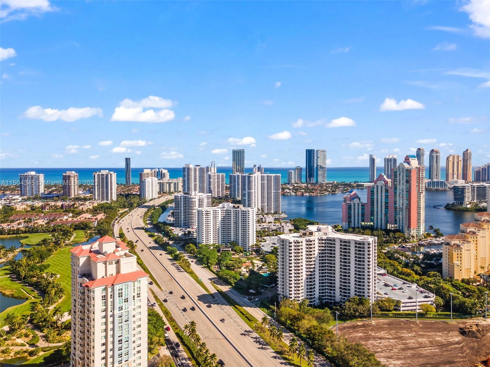 Spacious 2-Bedroom 2-Bathroom at Mystic Pointe Tower 600 condo with Turnberry golf course and skyline front-facing panoramic views. The interior features wood floors, high ceilings, and granite stone countertops. A large open living/ dining area and gourmet kitchen that has every appliance and under-counter lighting. The primary bedroom features an en-suite bathroom with a tub and walk-in shower with wall wall-mounted new fixture. Telescoping sliding doors that open to an outdoor, spacious balcony for seating. The entire property is gated and walled with a full-time doorman at the building. Pool, jacuzzi, BBQ, gym, game room, community room and playground. 7 lighted tennis courts, 4 lighted pickleball courts, dry cleaning, mini market, salon, restaurant, and marina. Close to the beach.