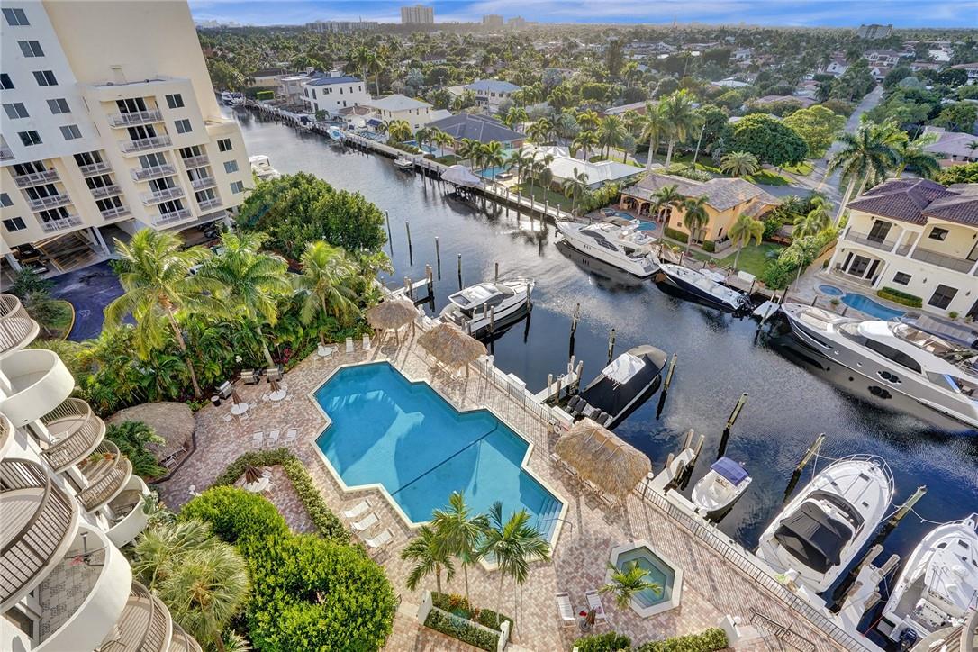 BEAUTIFUL 9TH FLOOR UNIT 2BD/2BA PLUS DEN ON THE INTRACOASTAL ACROSS FROM THE BEACH. 2 BALCONIES OVERLOOKING THE CANAL AND INTRACOASTAL. (1530 SQ FT UNDER AIR) ALL ROOMS HAVE INTRACOASTAL VIEWS. KITCHEN WITH GRANITE COUNTERTOPS AND SS APPLIANCES .TILE FLOORING THROUGHOUT. WASHER AND DRYER IN UNIT. PET WELCOME UNDER 25LBS. BOUTIQUE STYLE LIVING(ONLY 93 UNITS) POOL AREA WITH BBQ'S, TIKI HUTS & WHIRLPOOL SURROUNDED BY LUSH LANDSCAPE OVERLOOKING THE CANAL WHICH LEADS TO LAKE SANTA BARBARA. DOCKAGE WHEN AVAILABLE FOR SALE OR RENT BY OWNERS. PRIVATE OCEAN ACCESS. NEW AC