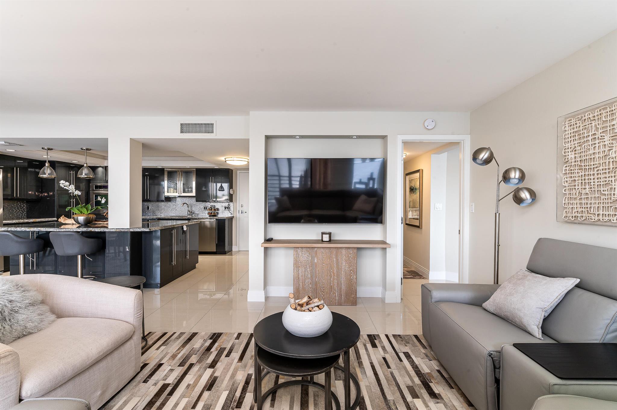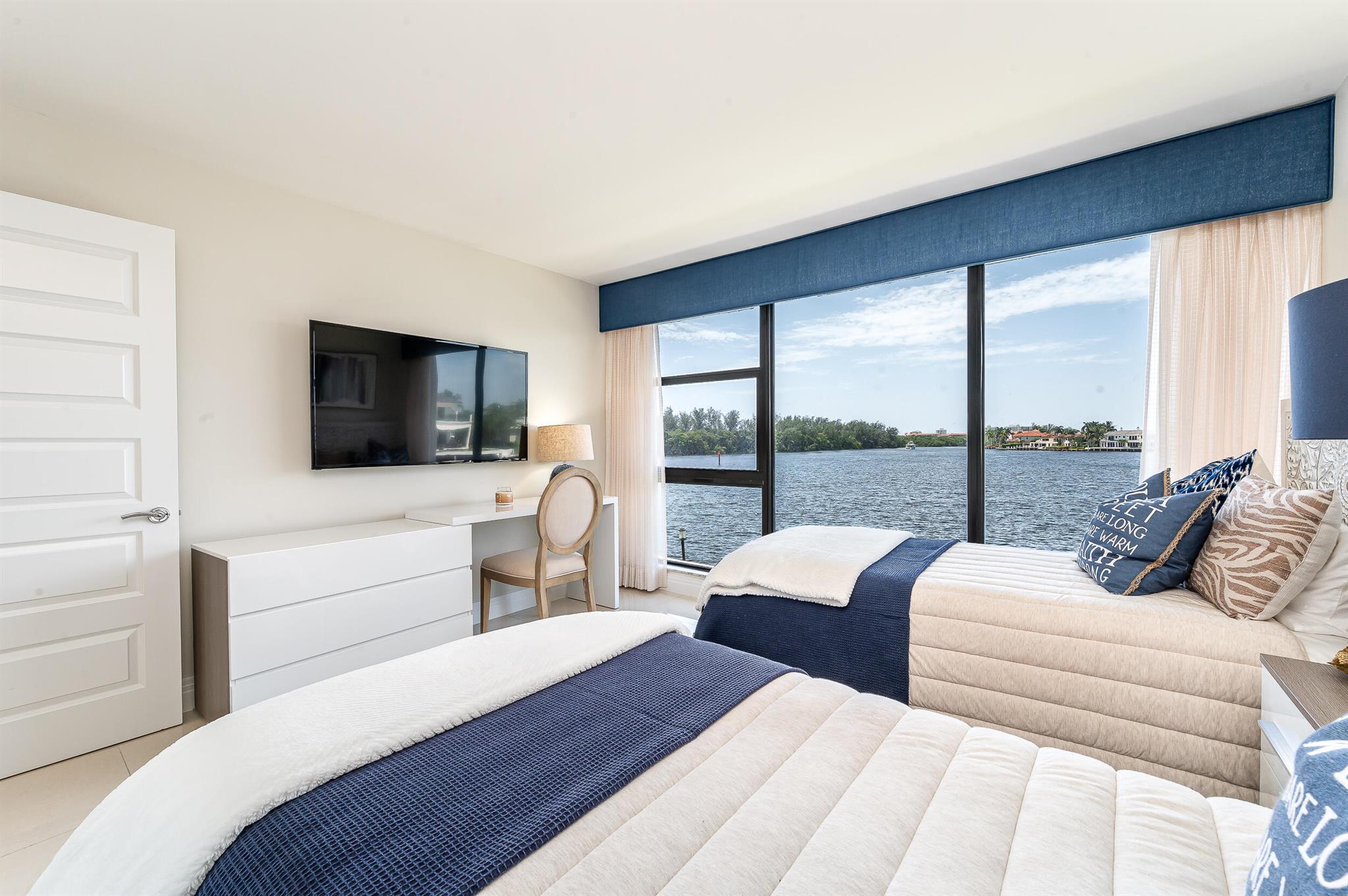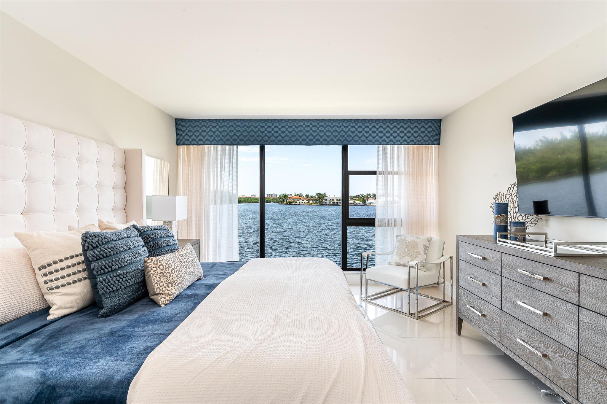 Forever water views! Sensational, renovated Intracoastal crown jewel located directly in the middle of picturesque Lake Rogers. A special offering for the most discerning buyer. Panoramic direct Intracoastal and lake views from every principal room. Floor to ceiling impact windows and folding sliders bathe the residence in an abundance of natural light. Sure to impress, the gourmet kitchen sparkles and delights with stainless steel appliances, separate island, and granite breakfast bar. Both bedroom suites are generously sized with marble baths and glass encased showers and offer the luxury of refined waterfront living. Throughout this designer decorated home you will find porcelain tile flooring, ceiling details, upgraded LED lighting, and solid core doors set against