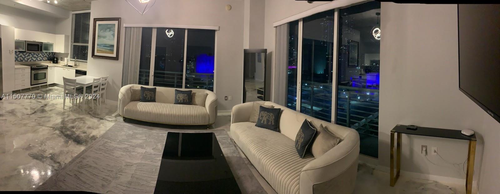 Beautiful fully furnished 2 bedroom and 2 bath corner unit with wrap around balcony at The Loft Downtown II. Polished floors with 10ft ceilings. Designer furniture included. Great skyline views within walking distance to Restaurants, Brewery, Brickell City Centre, Bayside, Kaseya Center, Brightline and the Metrorail station just steps away. 24 hour concierge and security. Rooftop pool, a second additional lap pool, sauna, gym with amazing views. Great for Investors !! The building permits 30-day rentals up to 12 times a year, ensuring flexibility and maximizing income potential.