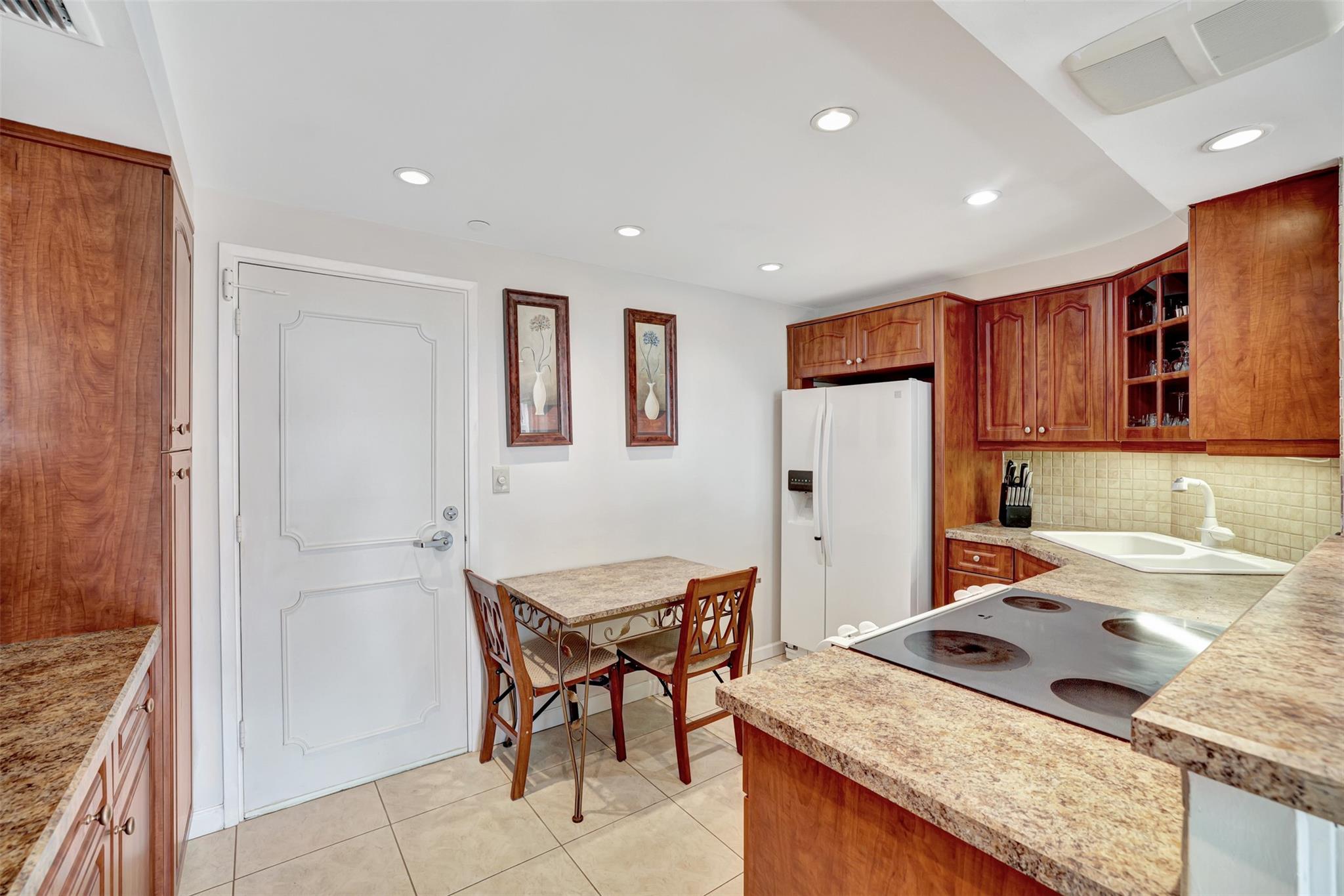 Enjoy OCEAN views from this 5th floor fully furnished one bedroom! TURN KEY GET-AWAY NEXT TO THE BEACH. Just bring your toothbrush, everything else is here. Kitchen is open to dining room - perfect for entertaining. Kitchen features Whisper quiet Bosch dishwasher, newer appliances & deep wood toned cabinetry. Crown molding complements the ceilings. Interior completely upgraded in a cohesive fashion. A/C new in 2018, hot water heater new in 2024. Building has fully funded reserves, A+ Insurance rating, 40 + 10 year inspections passed and no assessments planned. 55+ community, cash only, no renting. In the middle of everything; restaurants, entertainment, boating, golf, tennis, pickle ball. High speed fiber optic internet and cable included in maintenance.